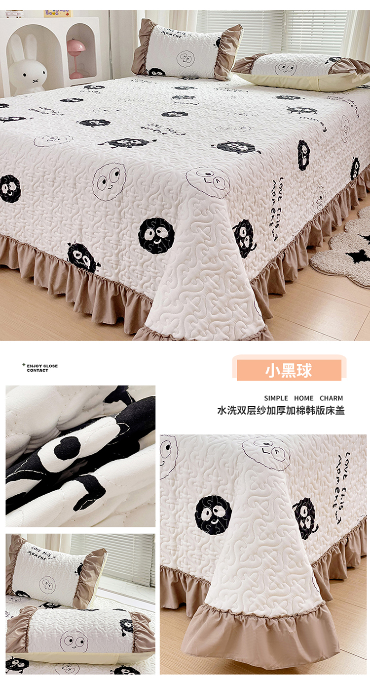 商品名称:纽缦家纺 2024水洗双层纱加厚加棉韩版床盖 小黑球