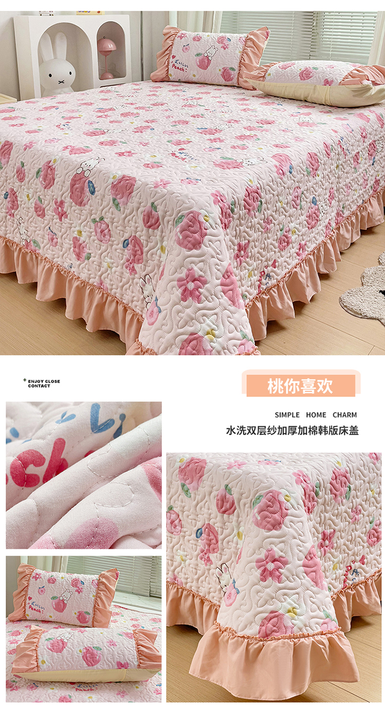 商品名称:纽缦家纺 2024水洗双层纱加厚加棉韩版床盖 桃你喜欢