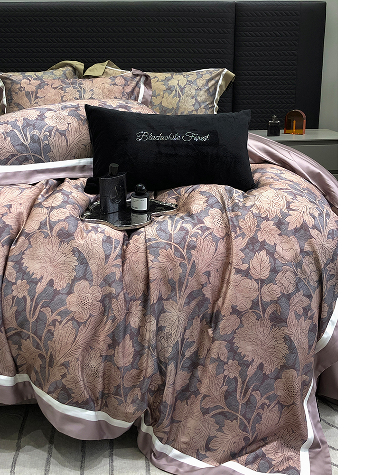 黑白森林2024款 60S支兰精天丝数码印花四件套,朝颜,木槿,玉茗,春浅,京墨,半夏,丹若,繁缕,青黛,德琳-粉,德琳-绿,蒂娜-灰,蒂娜-紫,慧莉-粉,慧莉-绿,欧瑞,夏夜