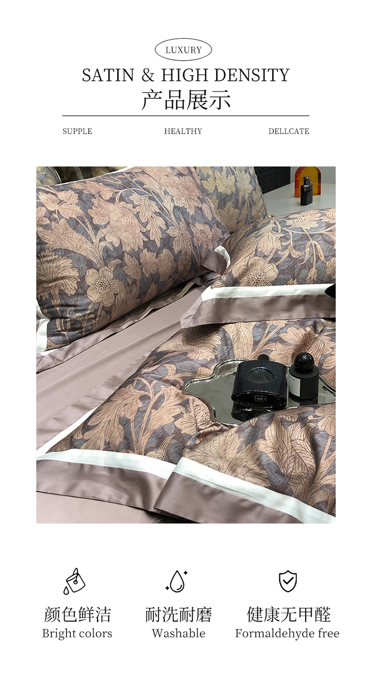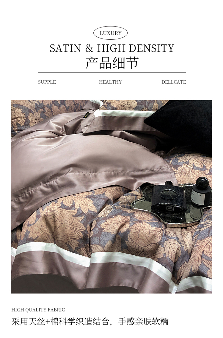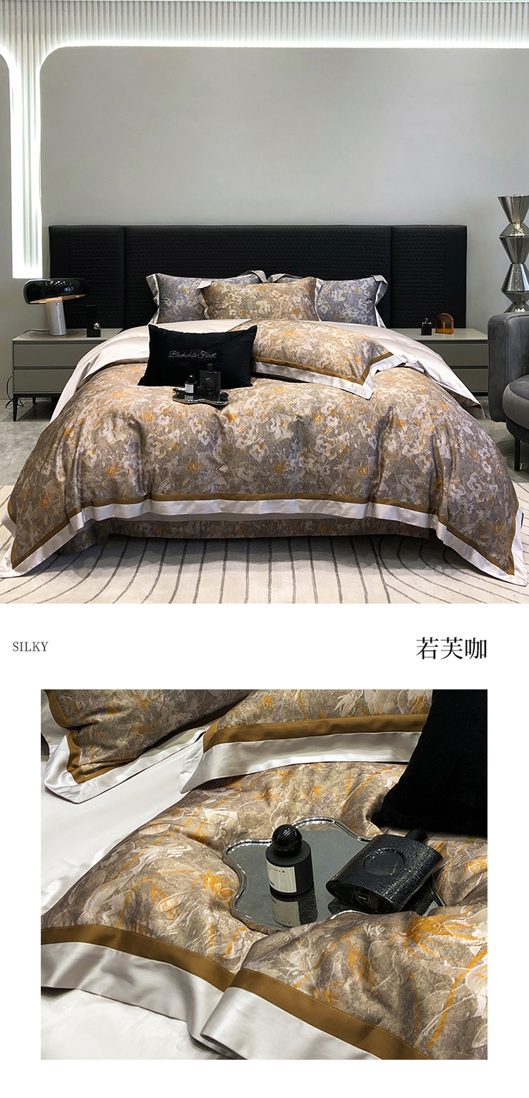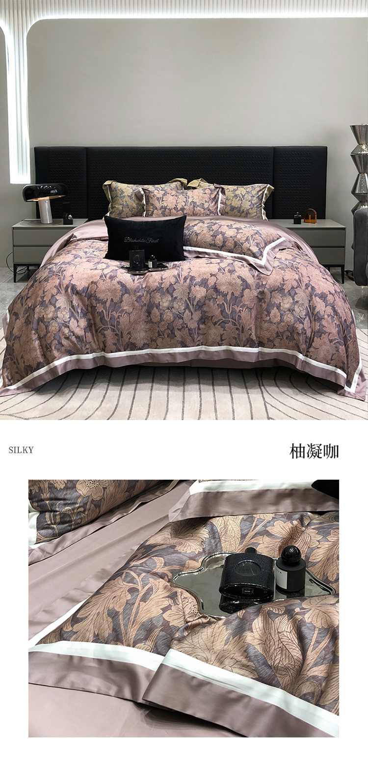 黑白森林2024款 50X50S高支天丝棉数码印花四件套天丝全棉,柚凝咖,柚凝绿,若芙灰,若芙咖