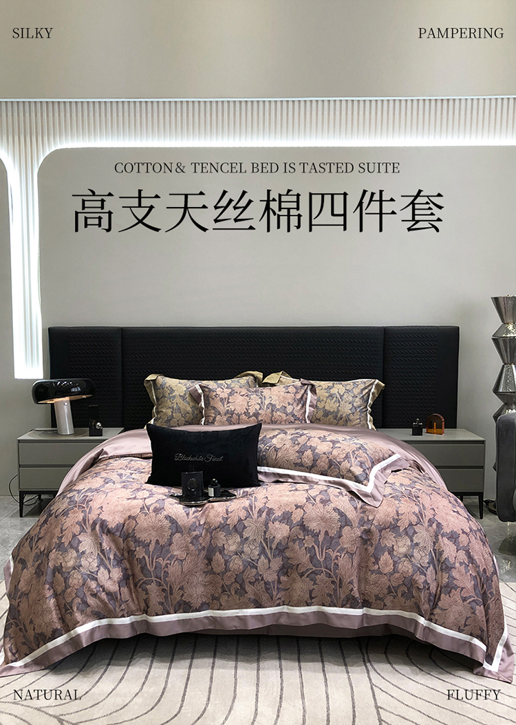黑白森林2024款 50X50S高支天丝棉数码印花四件套天丝全棉