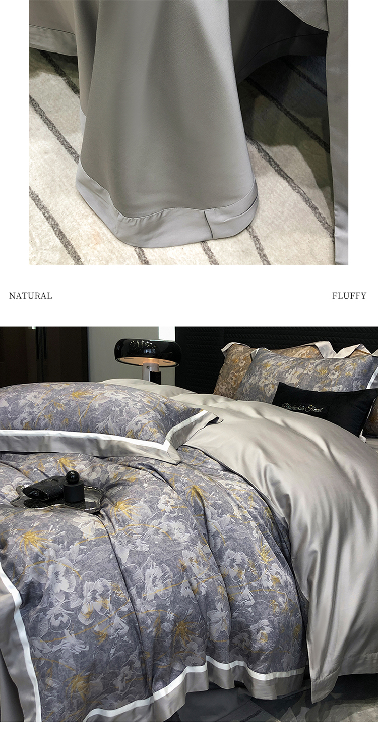 黑白森林2024款 50X50S高支天丝棉数码印花四件套天丝全棉,格伦黄,格伦绿,若瑶灰,羽笛蓝