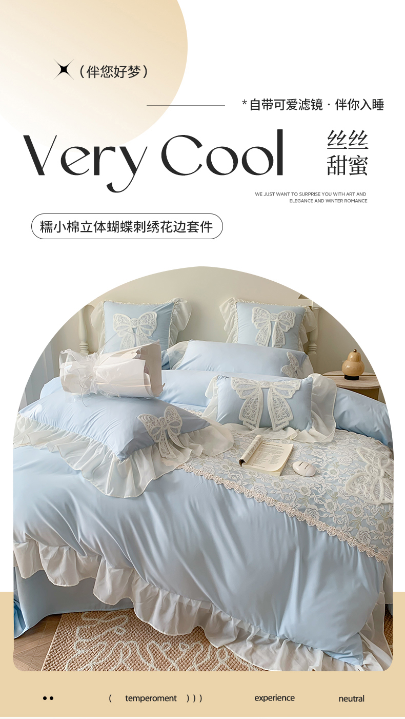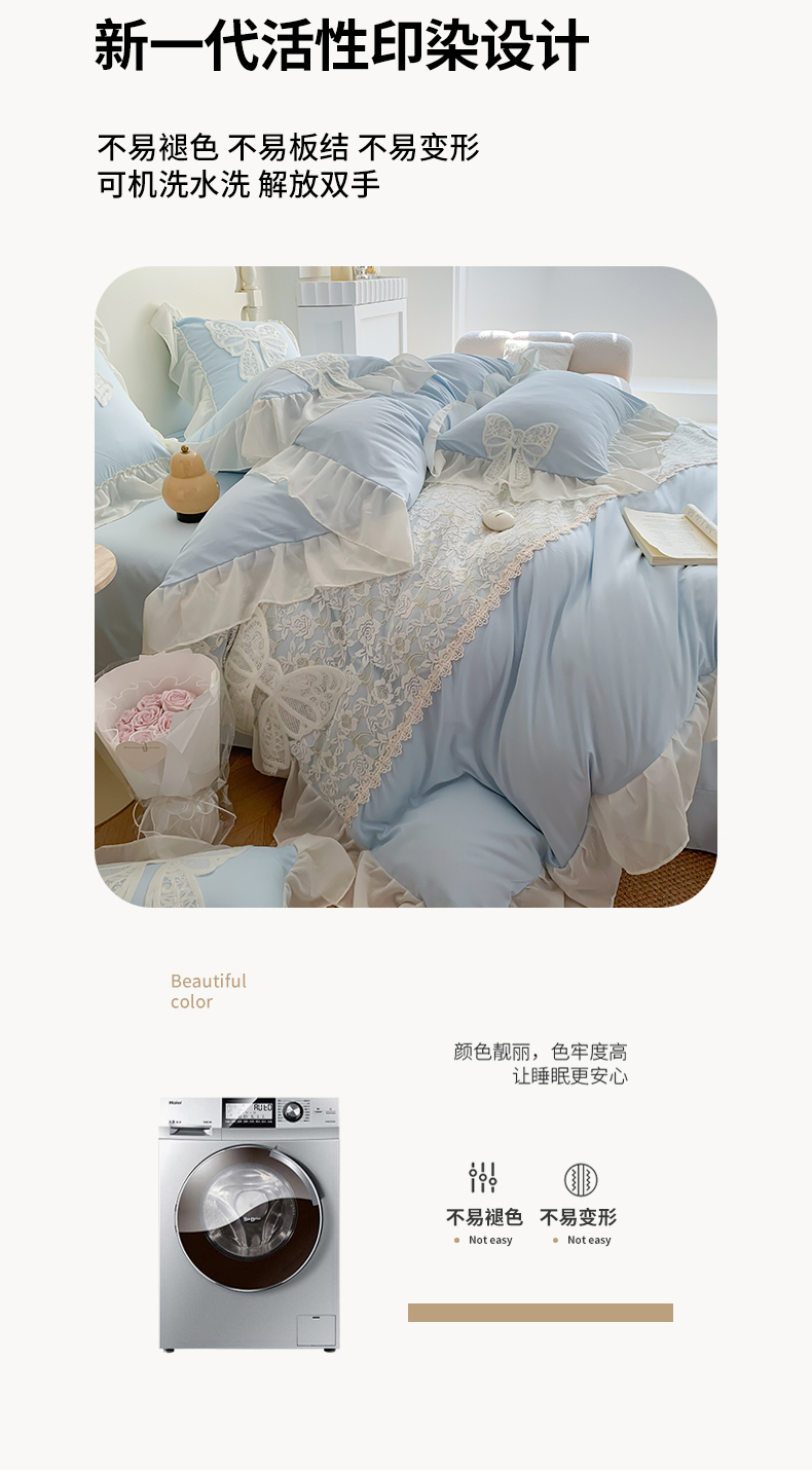 商品名称:吾欢心 2025新款蝴蝶仙子蕾丝花边四件套 蝴蝶仙子蓝