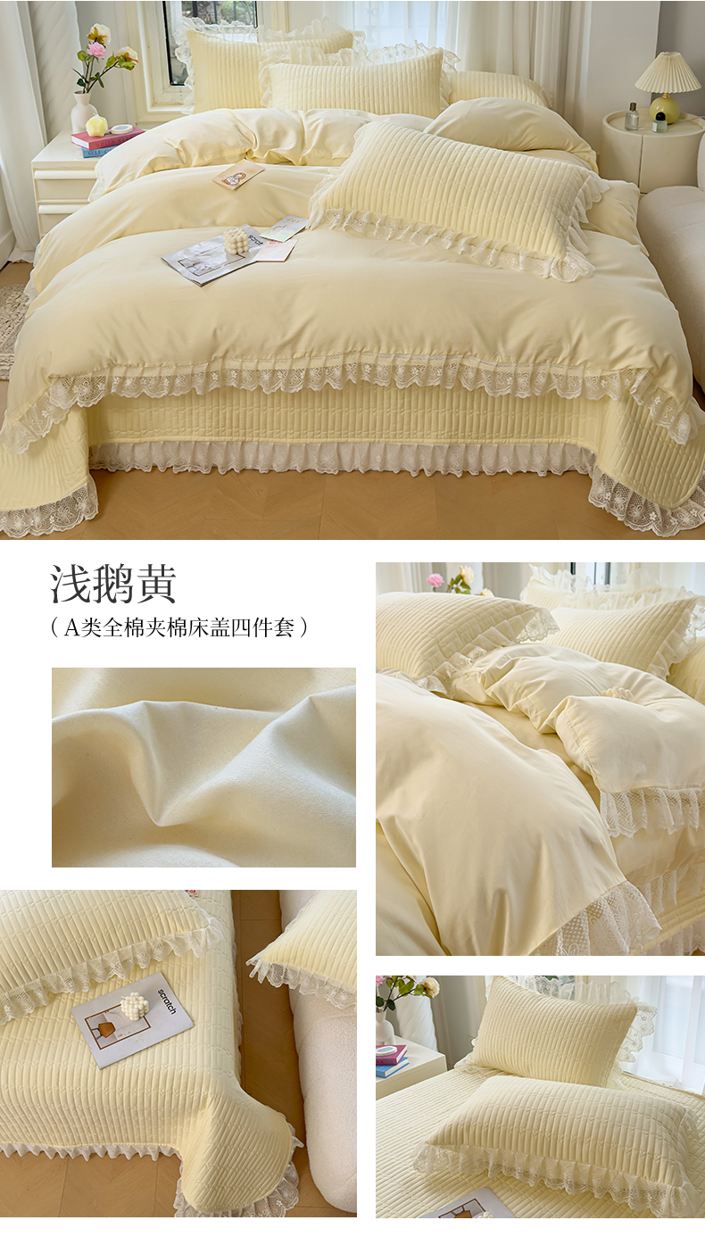 当前位置: 91家纺网 > 商品网购 > 床品套件 > 四件套 > 全棉普通四件套 > 宜凡家纺 2024新款双面全棉印花系列床盖四件套 浅鹅黄