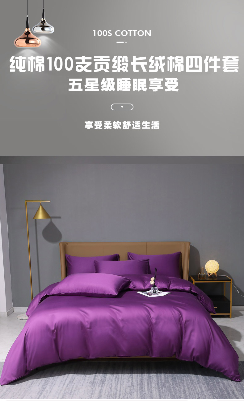 当前位置: 91家纺网 > 商品网购 > 床品套件 > 四件套 > 长绒棉四件套 > 晶缦家纺 2024新款100S全棉贡缎长绒棉纯色四件套和单品-纯沐系列 四件套 纯沐-罗兰紫