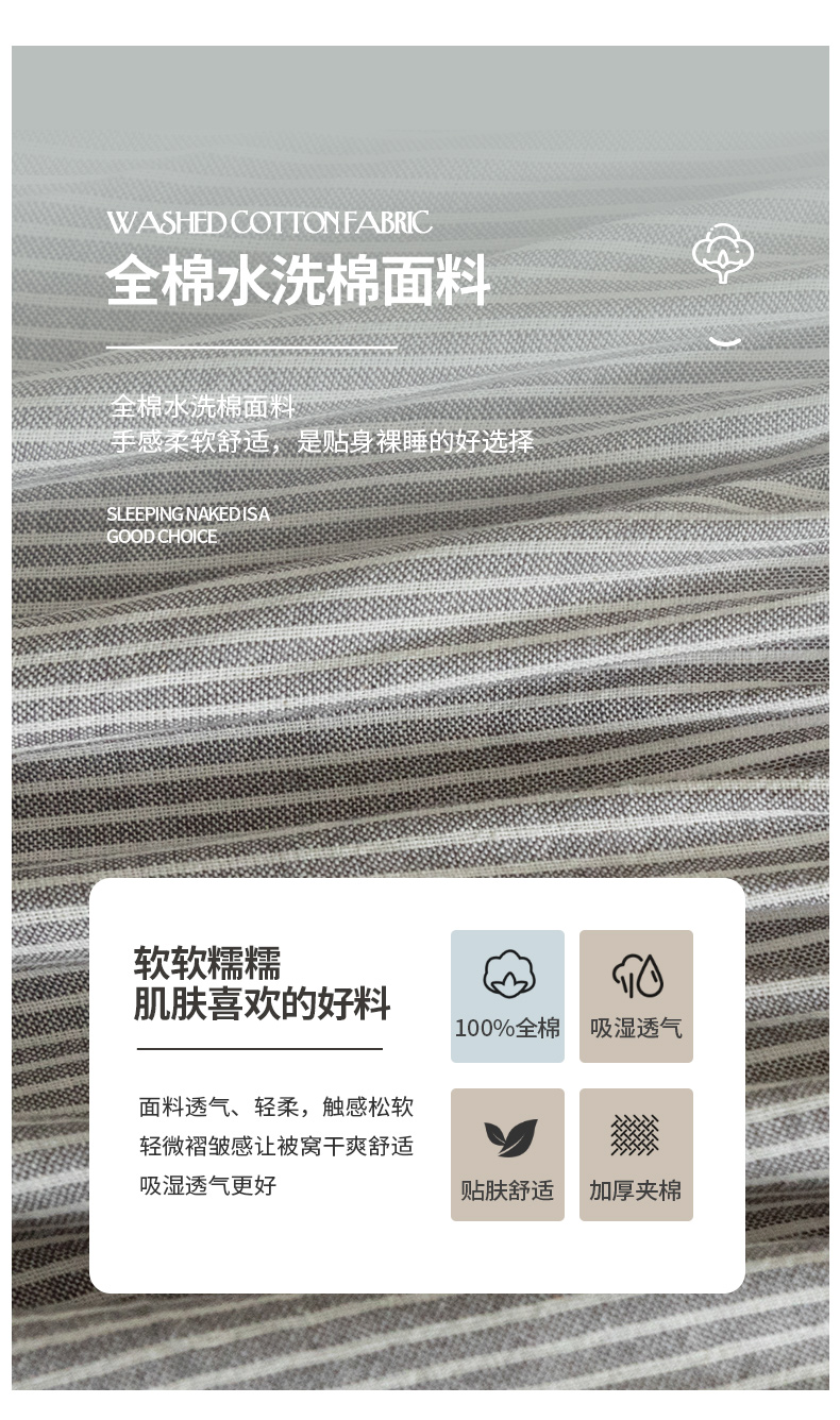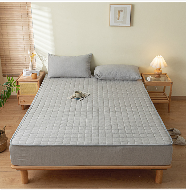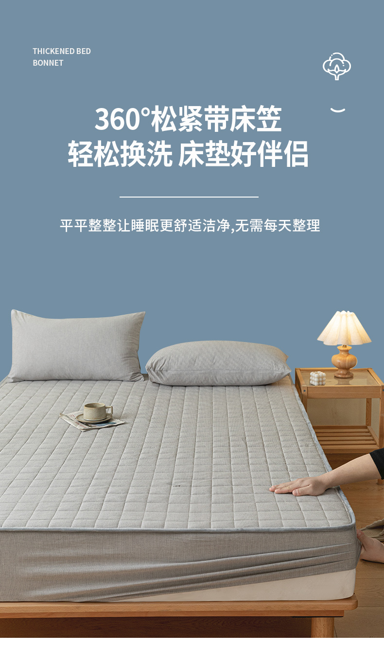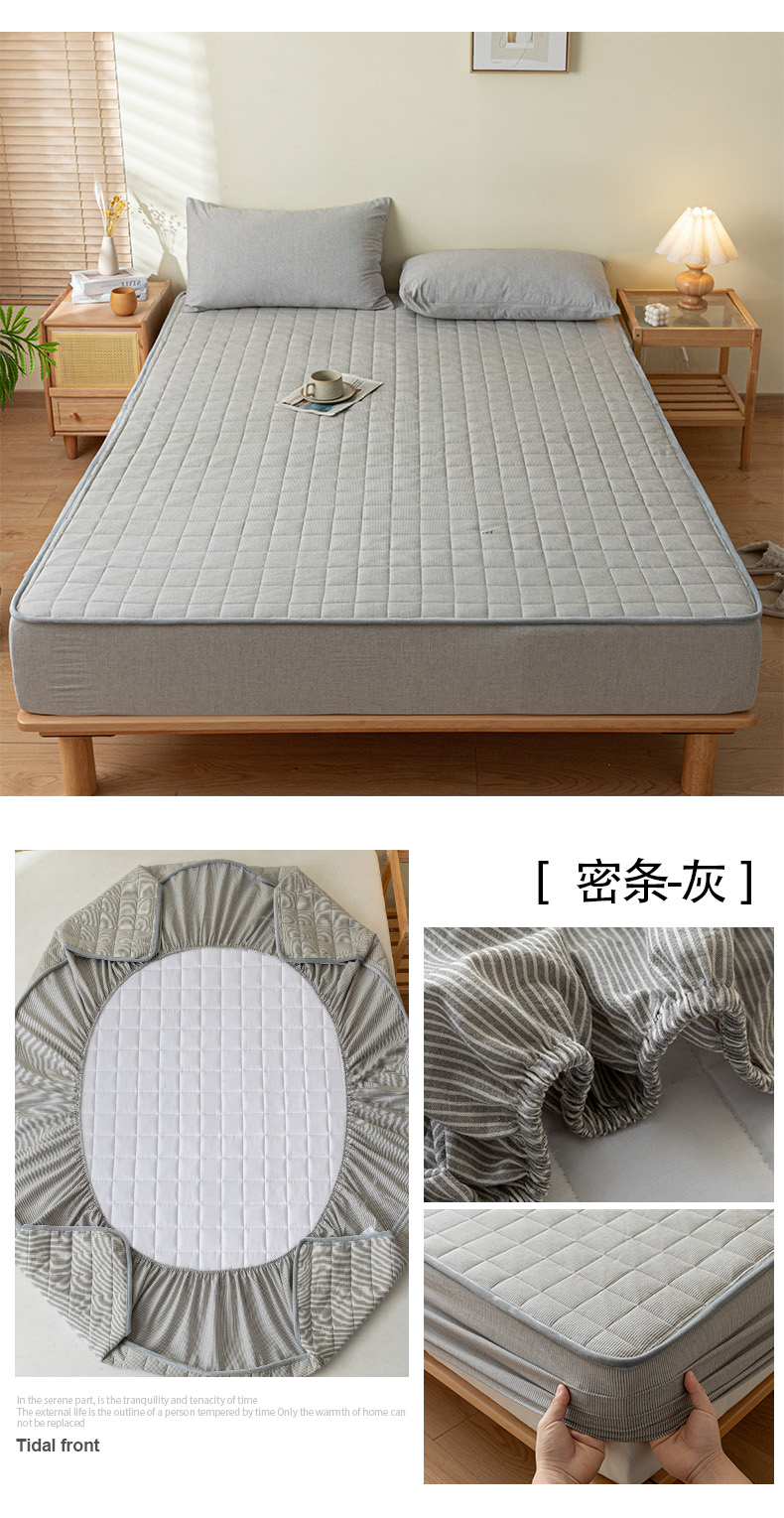 木子家纺 2024新款A类全棉水洗棉夹棉全包裹式床笠 密条-灰