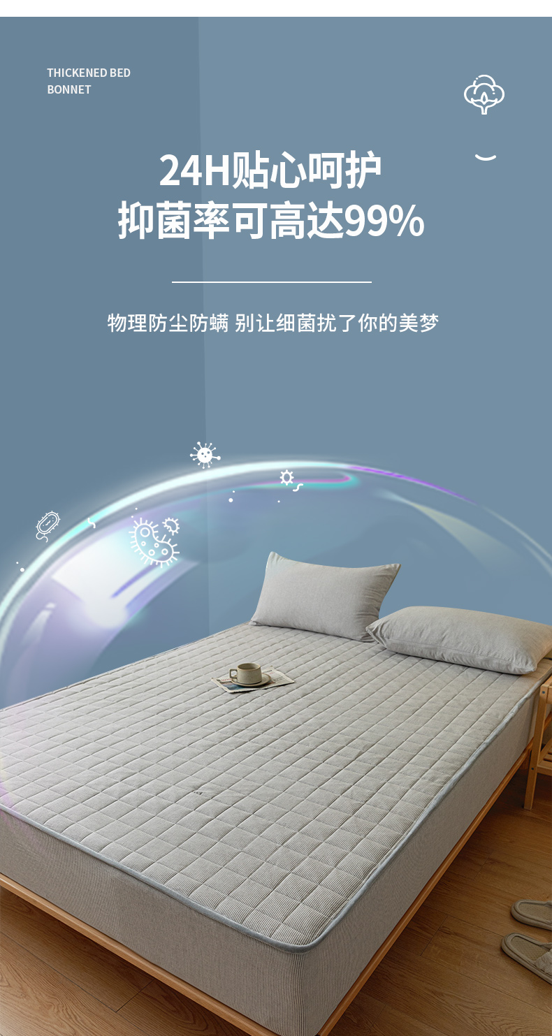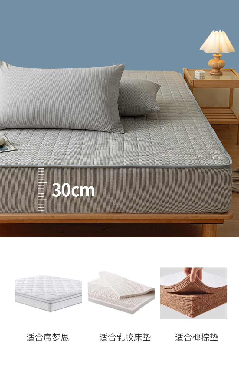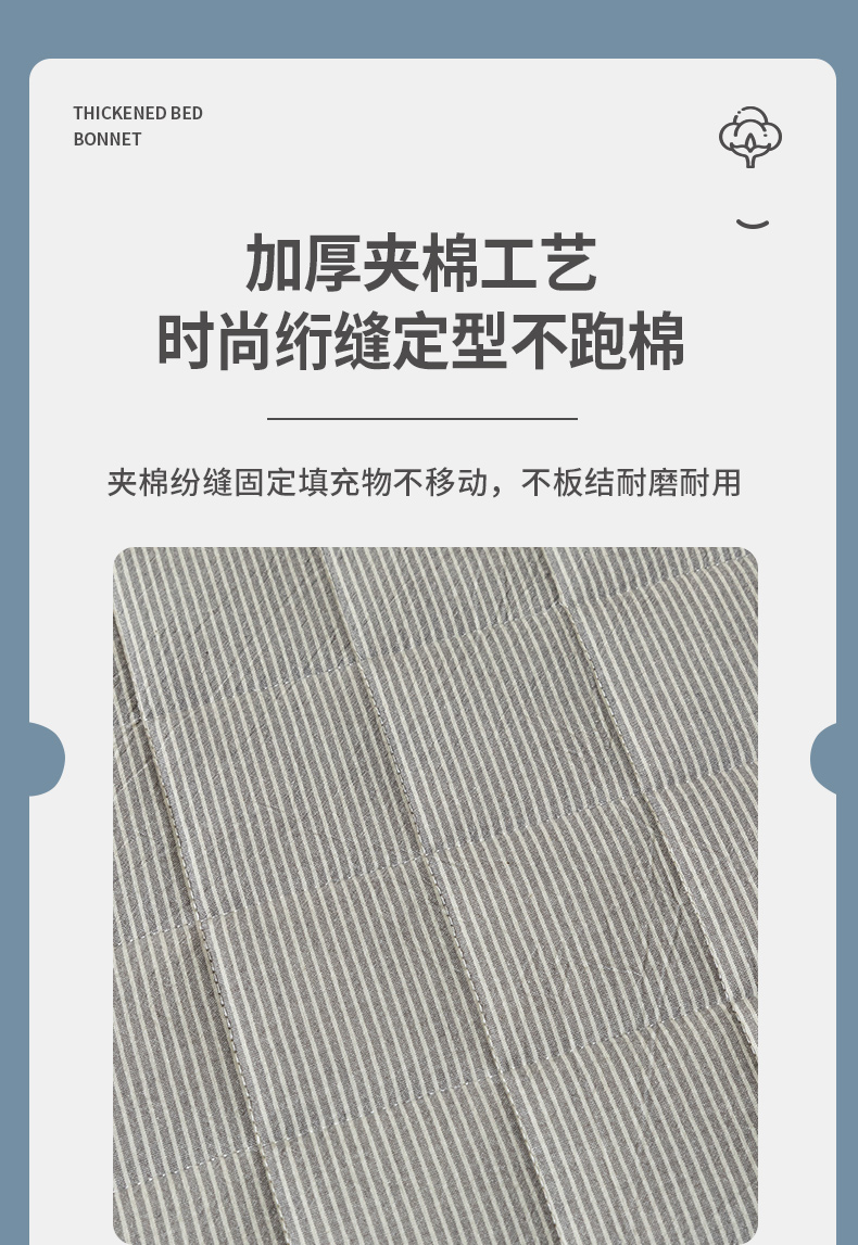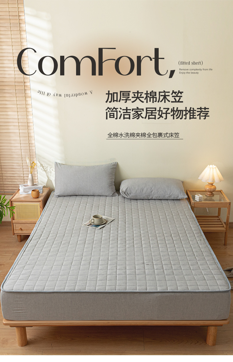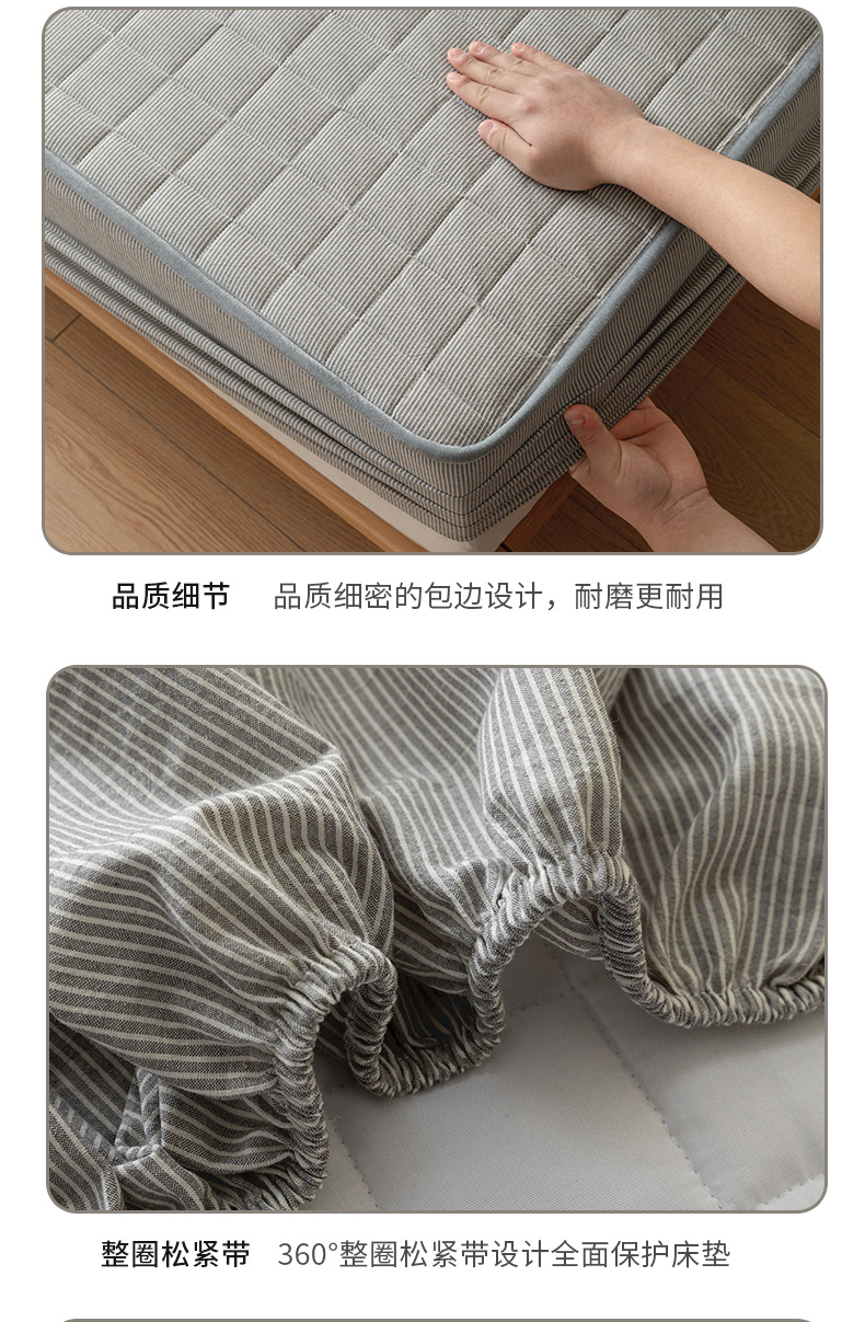 商品名称:木子家纺 2024新款A类全棉水洗棉夹棉全包裹式床笠 密条-灰