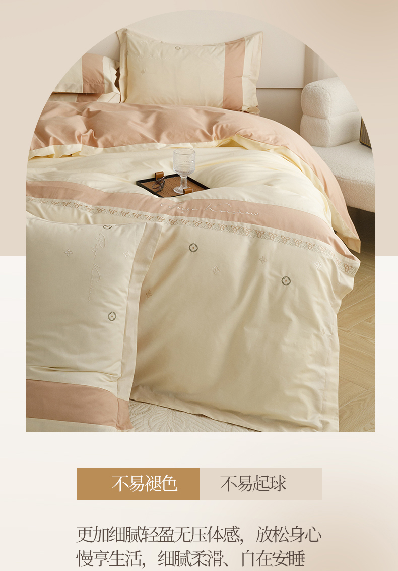 (总)艾莱家纺 2025新款A类100支长绒棉纯棉四件套-郁金香,郁金香-薄荷绿,郁金香-浅米驼,郁金香-珍珠粉