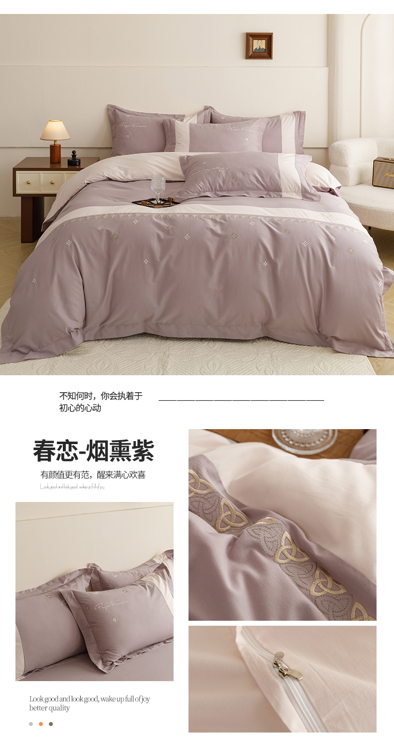 (总)艾莱家纺 2025新款A类50S云柔棉加密柔顺磨毛四件套-依人梦,依人梦-巴黎粉,依人梦-高级灰,依人梦-浪漫紫,依人梦-浅香槟