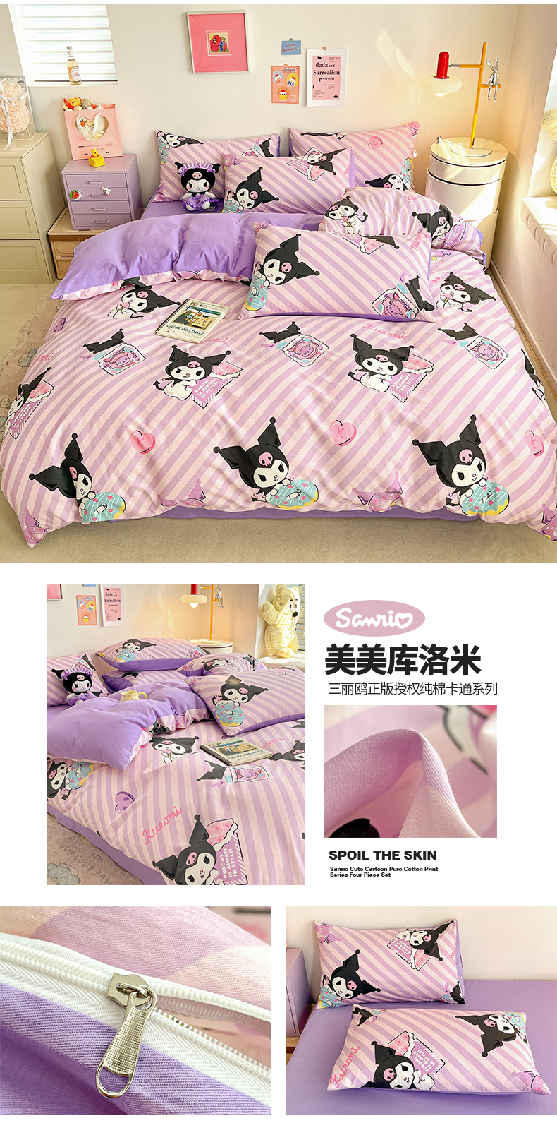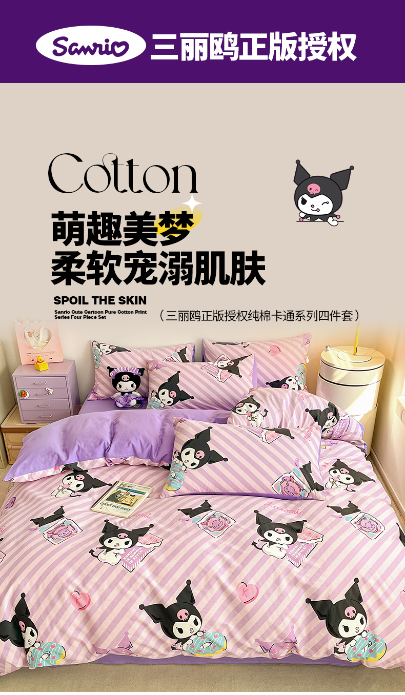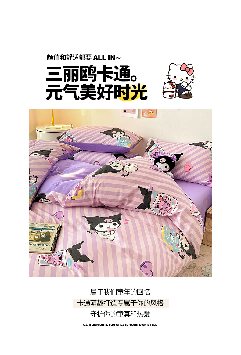 当前位置: 91家纺网 > 商品网购 > 床品套件 > 四件套 > 全棉普通四件套 > 桃子家居 2024新款三丽鸥正版授权全棉卡通系列四件套 棉三丽鸥-美美库洛米
