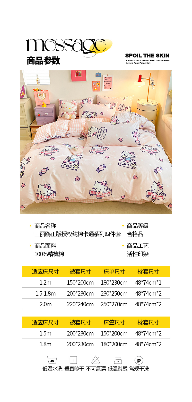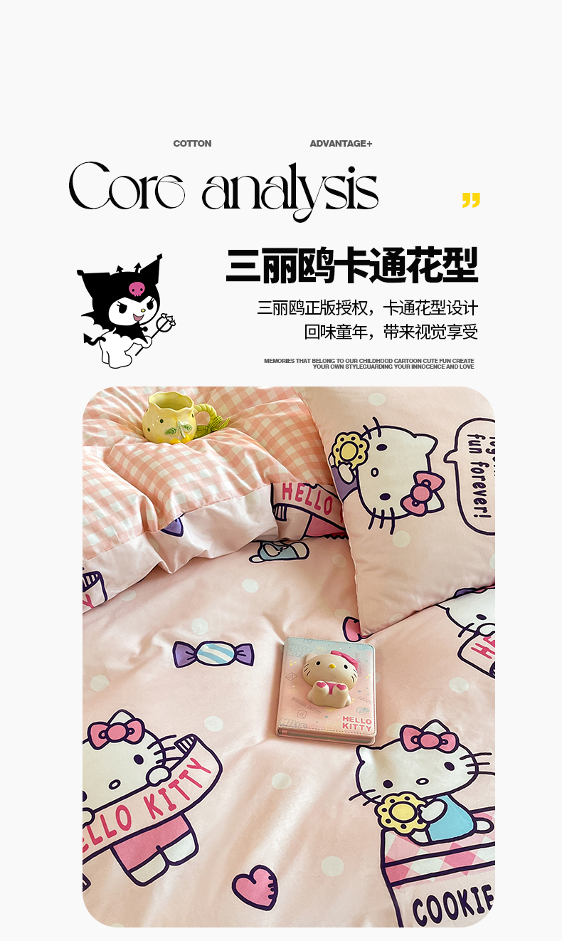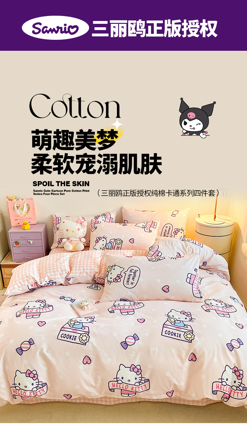 当前位置: 91家纺网 > 商品网购 > 床品套件 > 四件套 > 全棉普通四件套 > 桃子家居 2024新款三丽鸥正版授权全棉卡通系列四件套 棉三丽鸥-糖果kitty