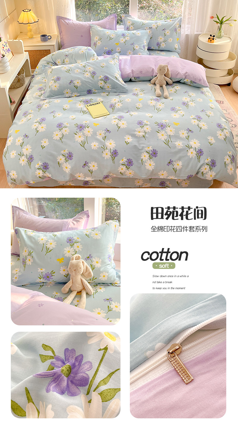 绵庭家纺 2024新款AB版全棉印花系列四件套 田苑花间