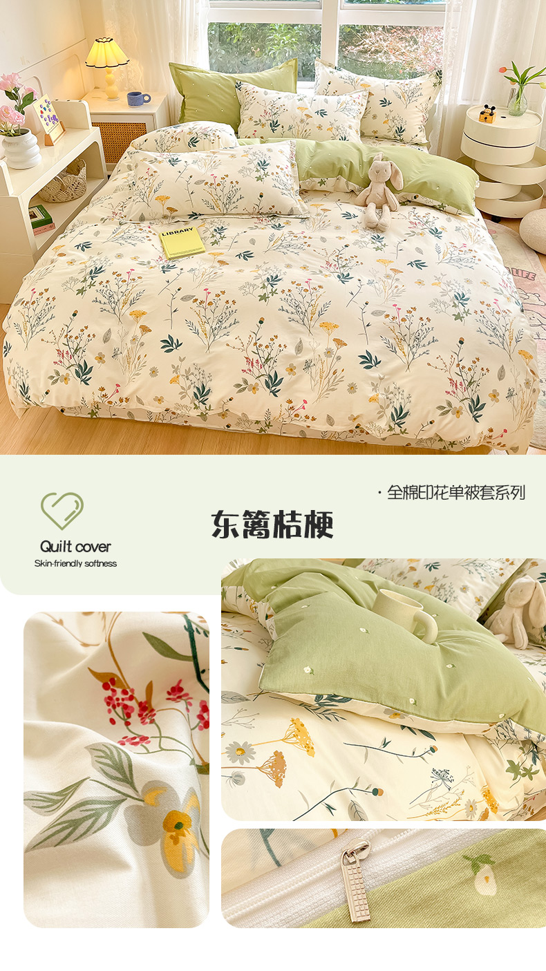 绵庭家纺 2024新款AB版12868全棉印花单被套 东篱桔梗
