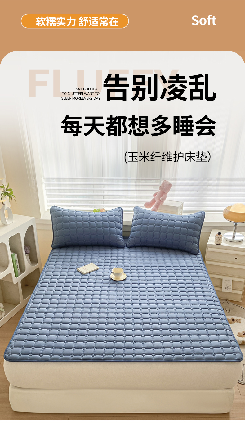 商品名称:暖季 2025新款A类数码印花床护垫 床护垫-琉璃蓝