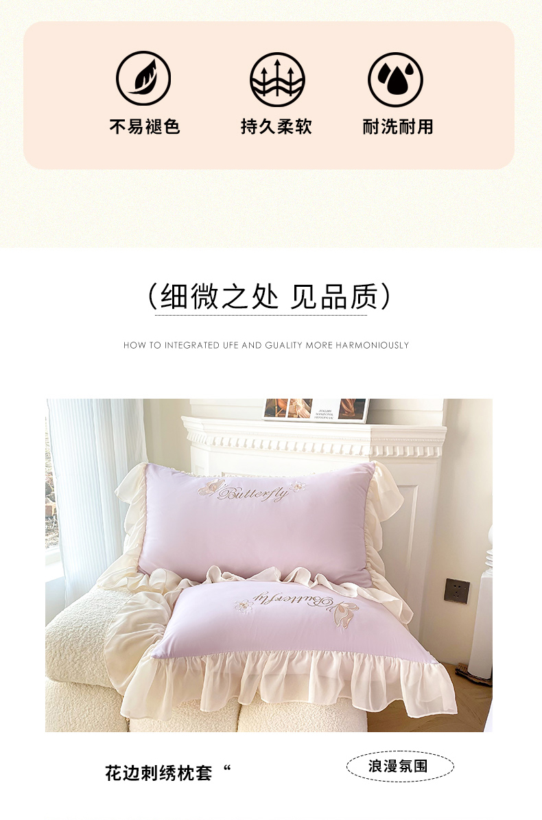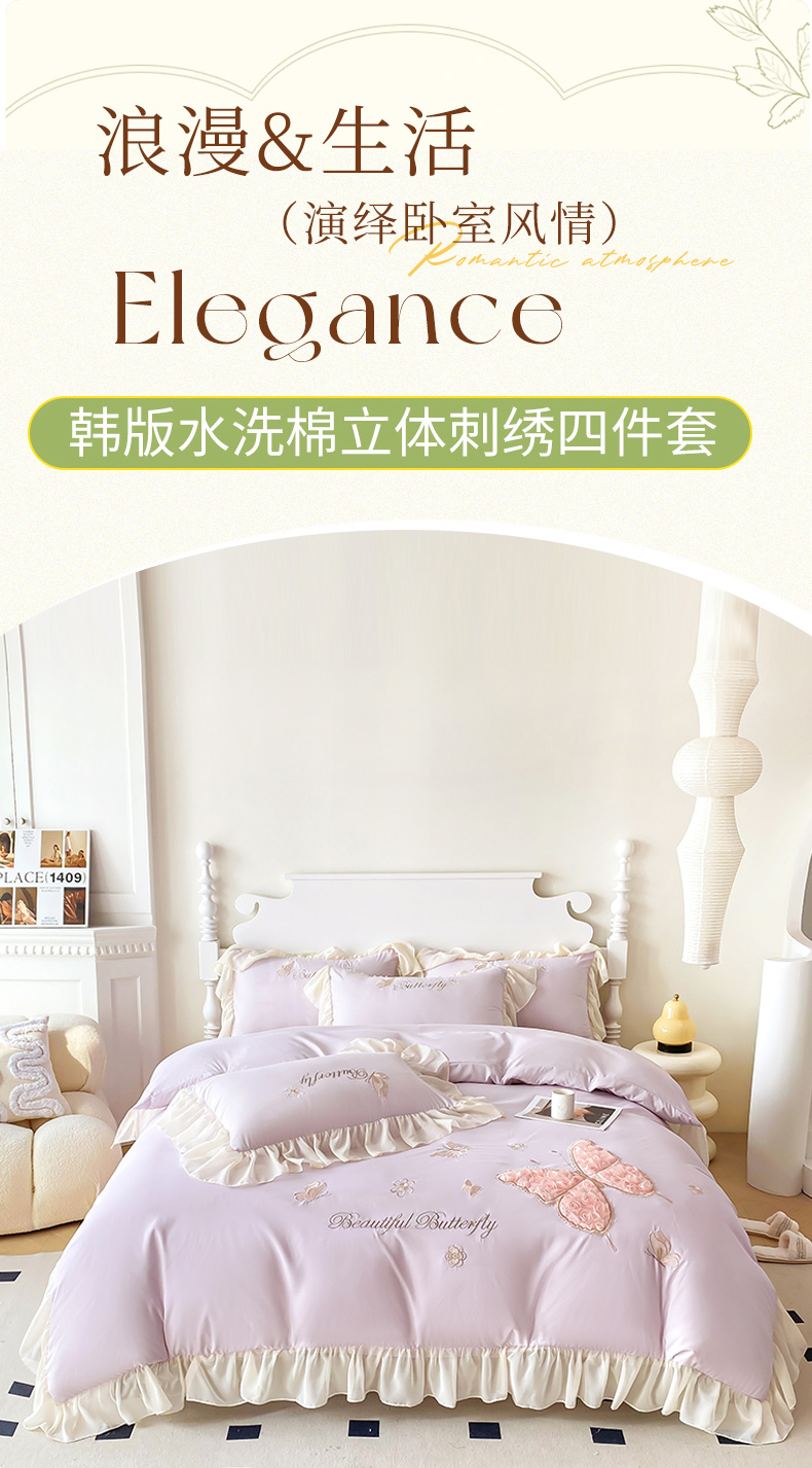 富盛 2024新款水洗亲肤棉立体刺绣四件套公主风四件套-蝴蝶系列 蝴蝶-紫