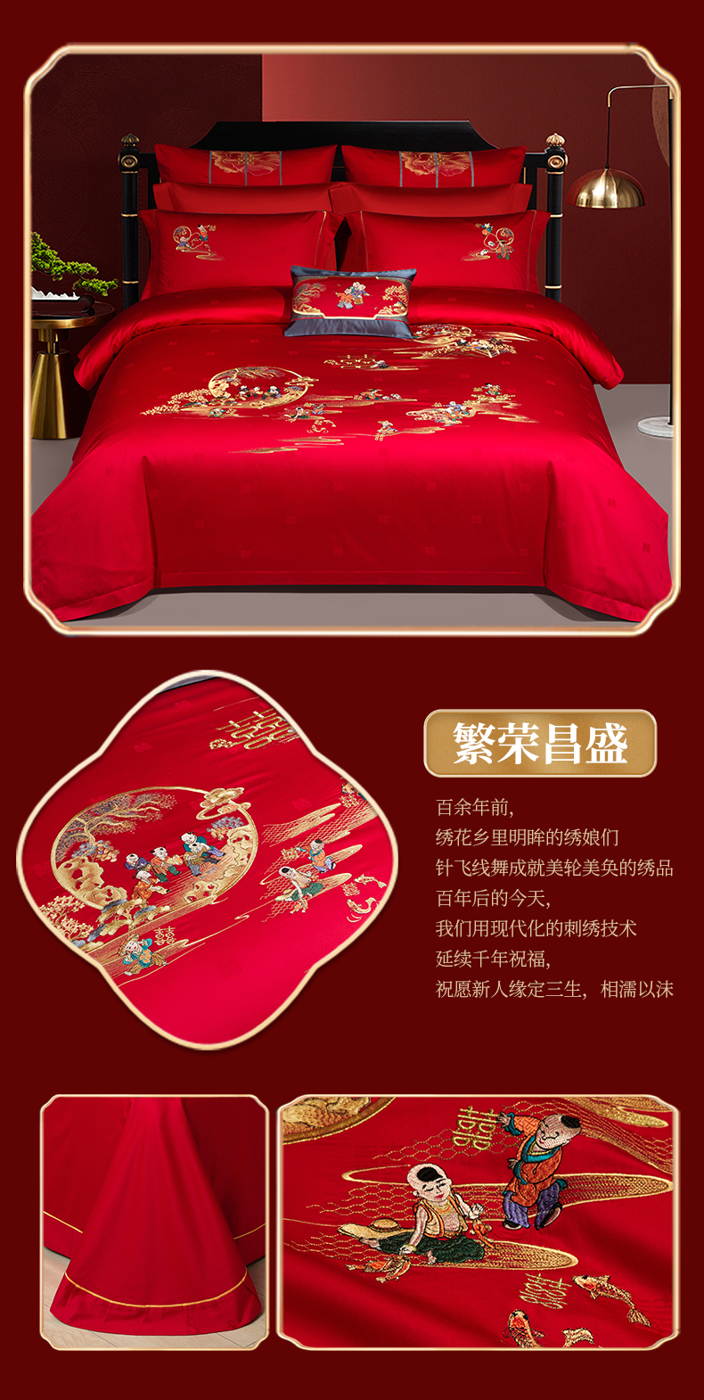 商品名称:100支100S婚庆四件套长绒棉全棉刺绣可选六件套结婚喜庆