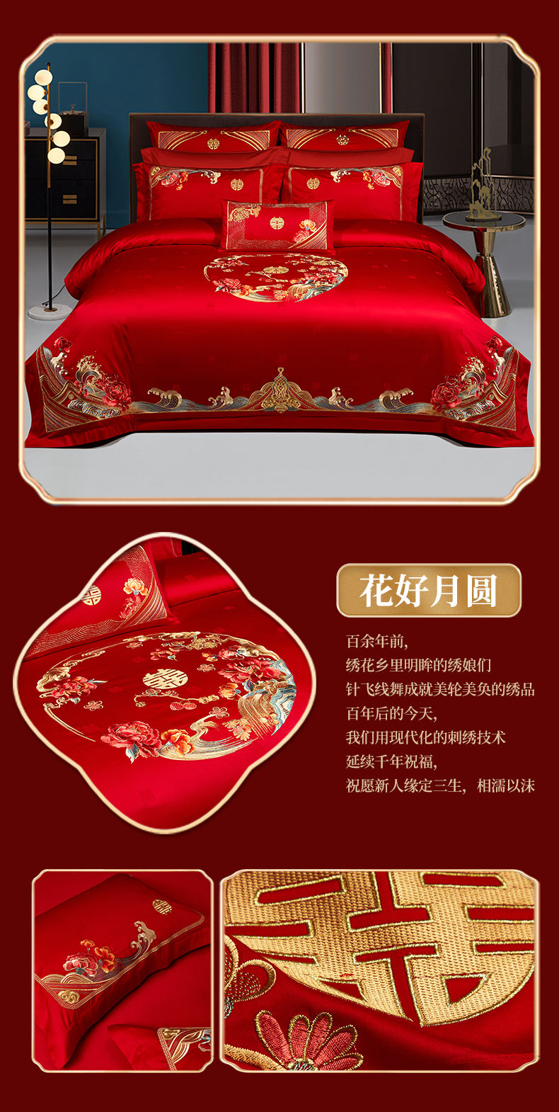 100支100S婚庆四件套长绒棉全棉刺绣可选六件套结婚喜庆