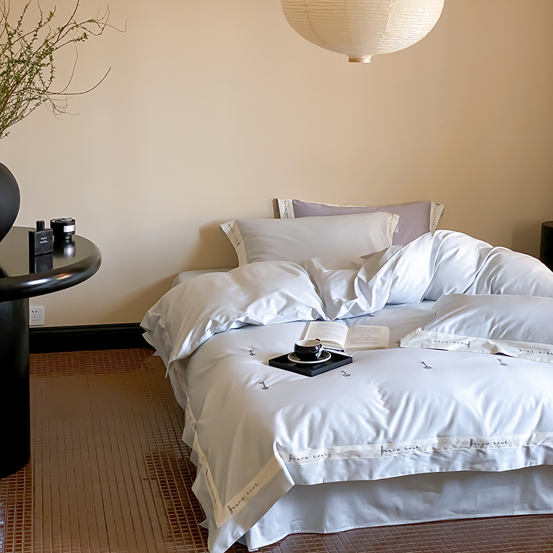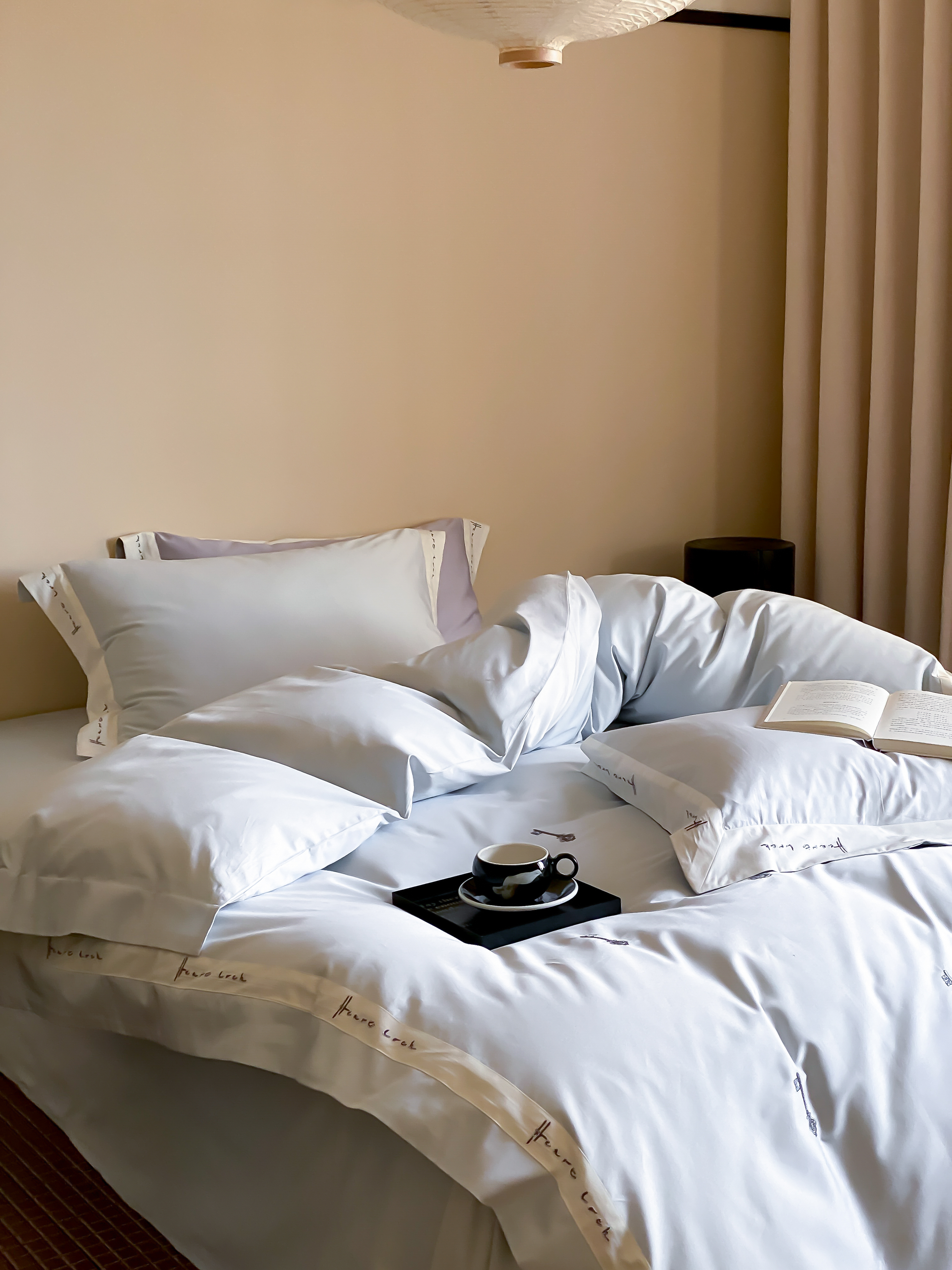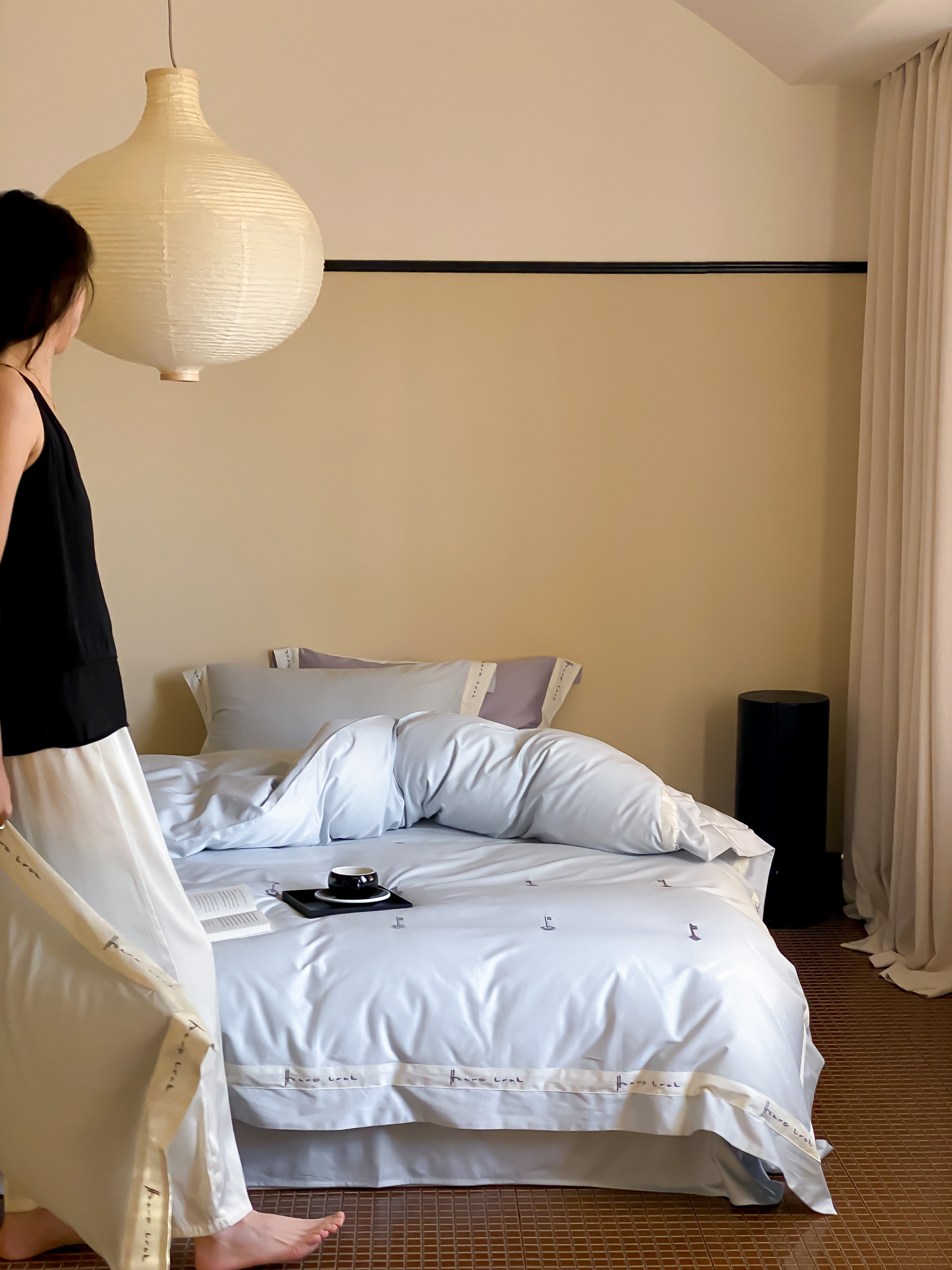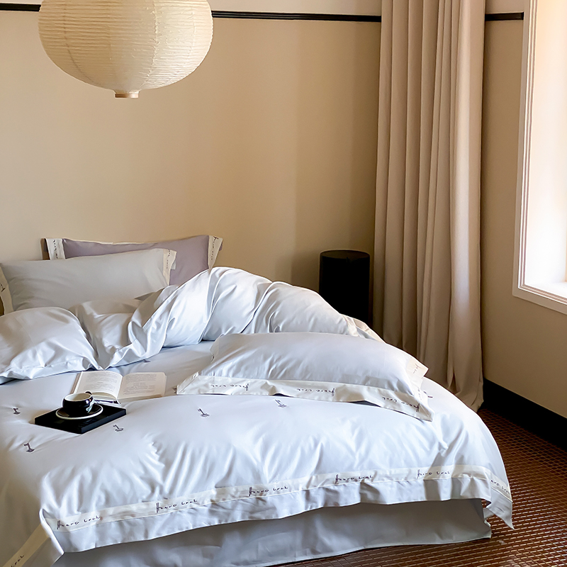 (总)赫帛 2025新款A类全棉棉麻色织提花四件套-灰屿,灰屿