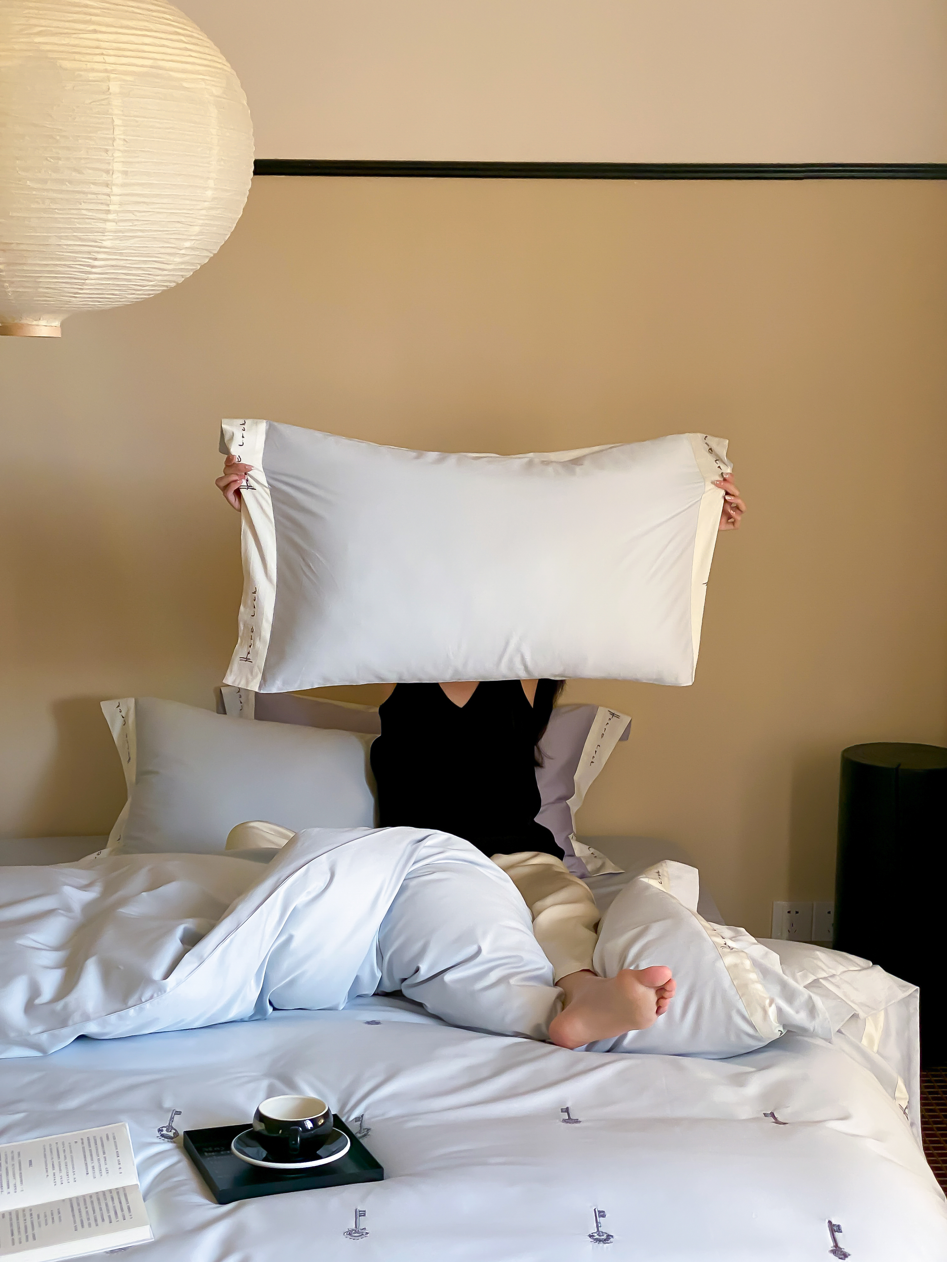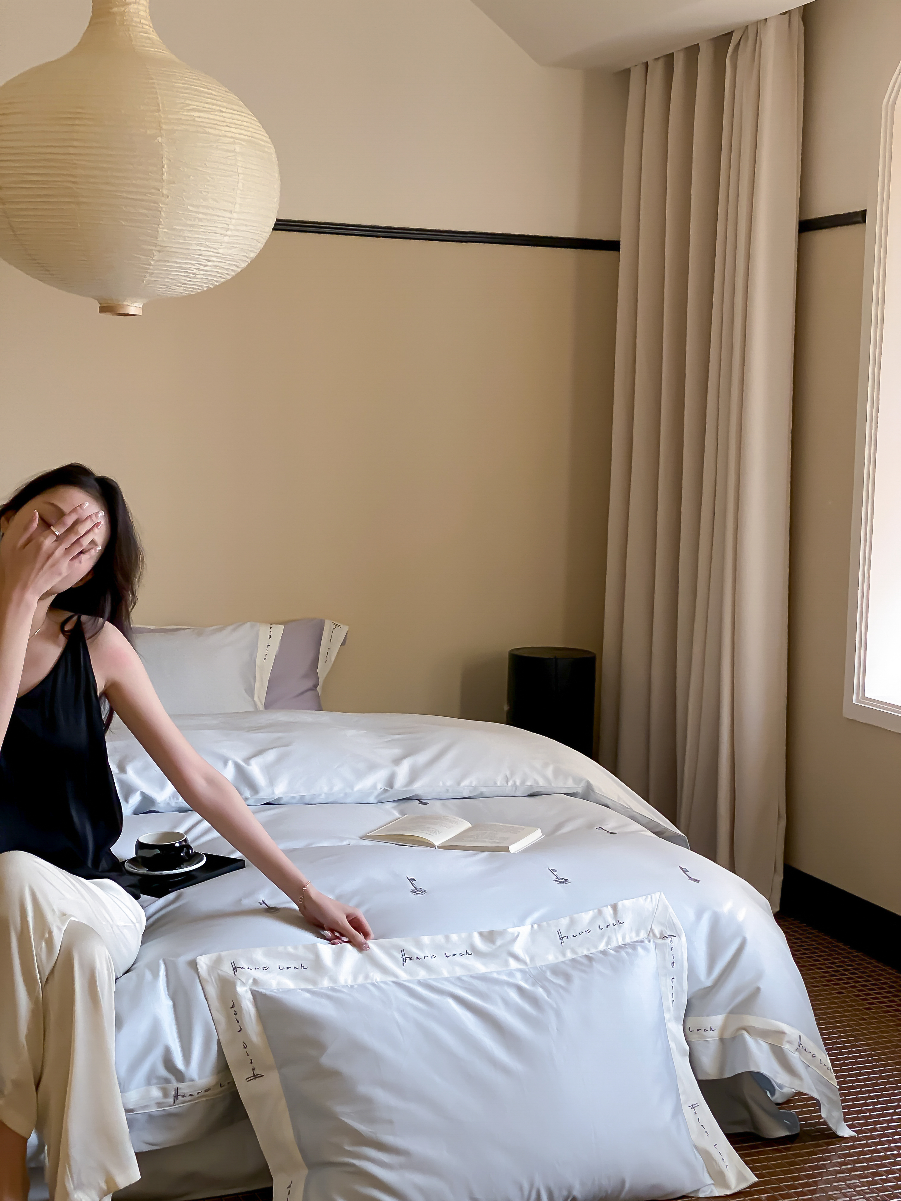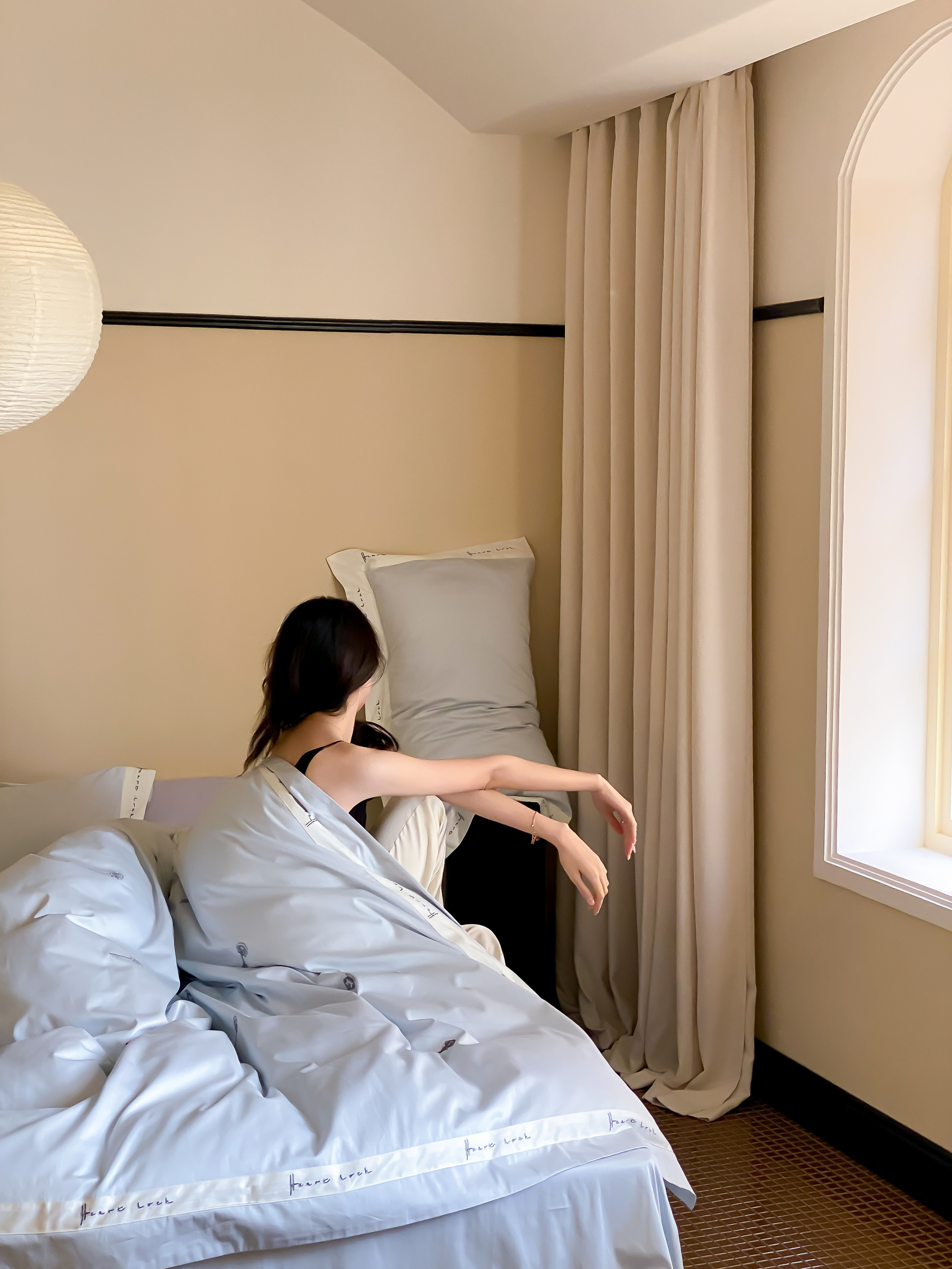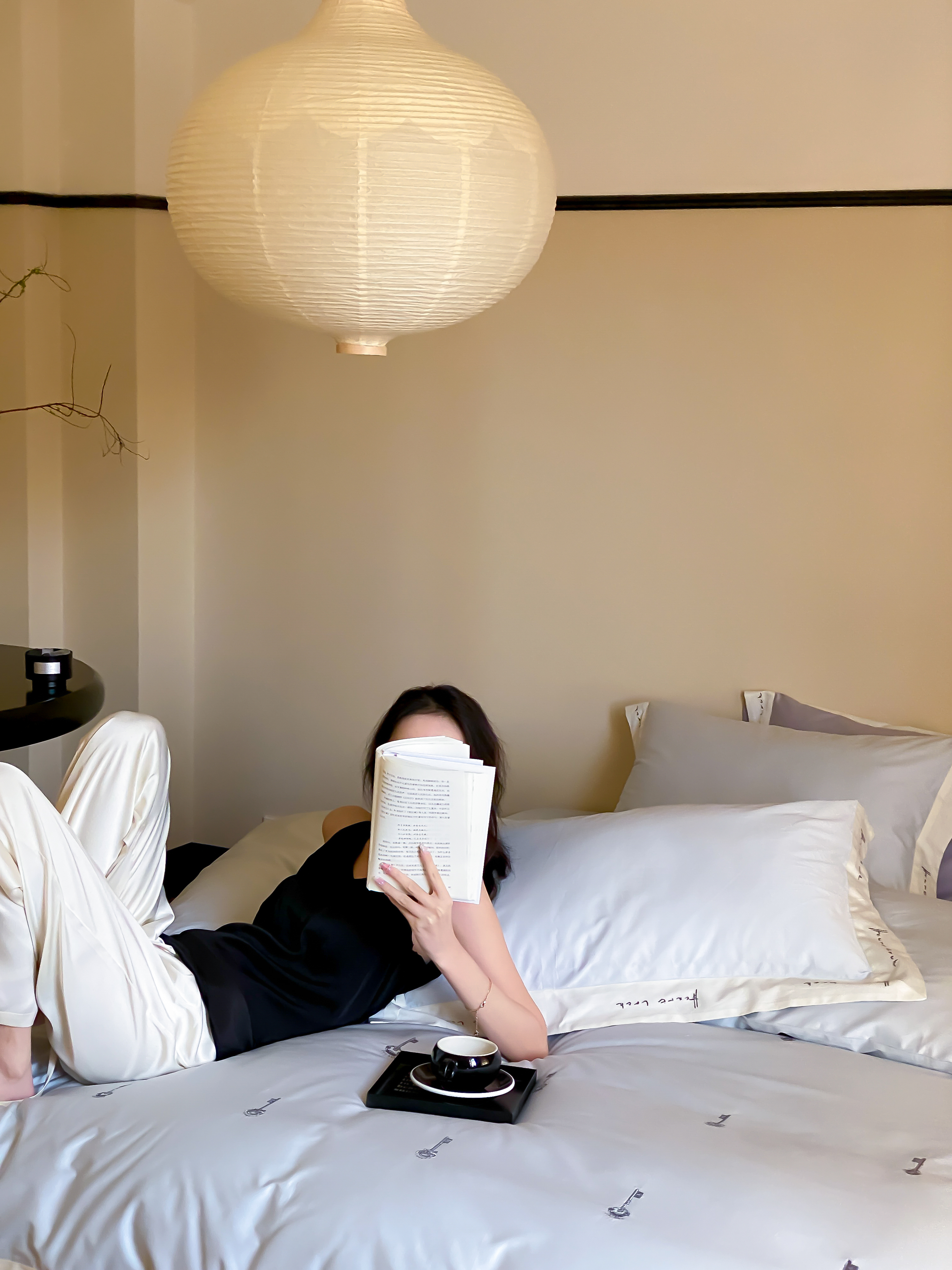 (总)赫帛 2025新款A类全棉棉麻色织提花四件套-灰屿,灰屿