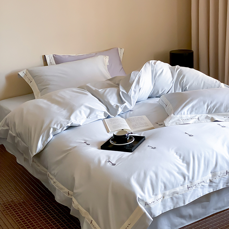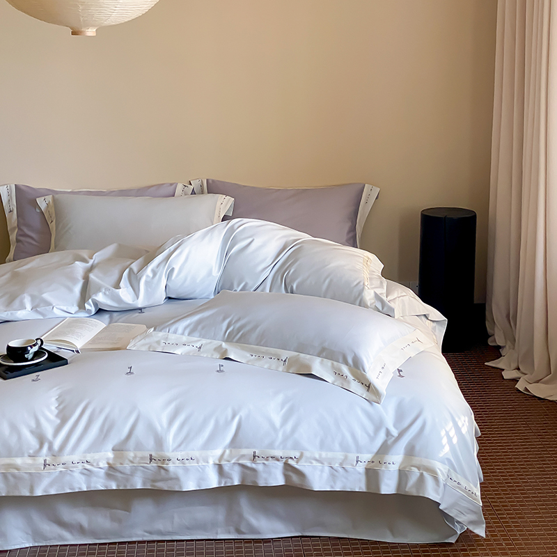 (总)赫帛 2023新款60S兰精天丝四件套,波光粼粼,闪亮字母-丁香紫,闪亮字母-牛油果绿,珍珠奶咖色,珍珠桃桃色,珍珠芋泥色