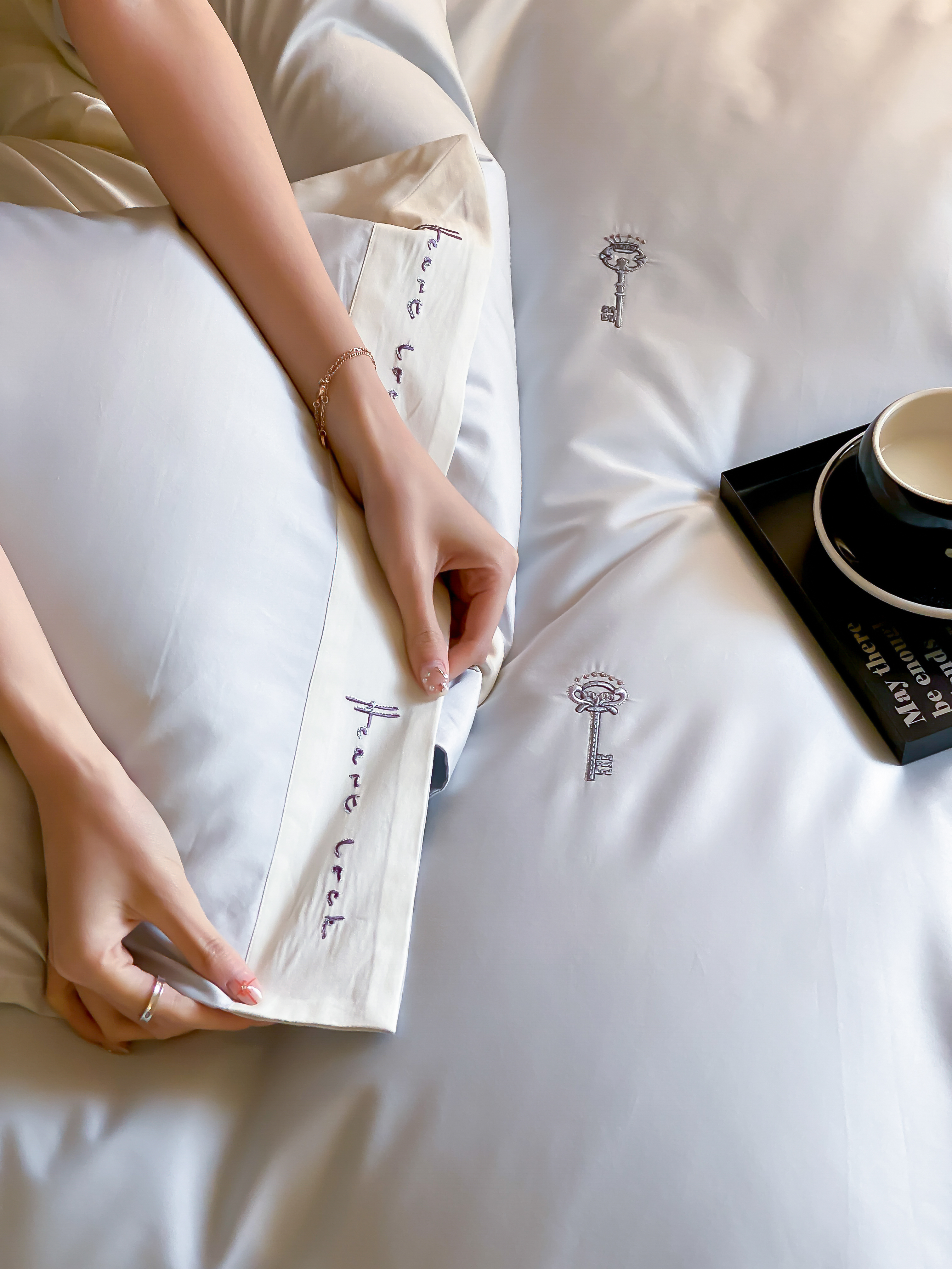 (总)赫帛 2024新款50s缎纹数码印花长绒棉四件套--钥匙系列