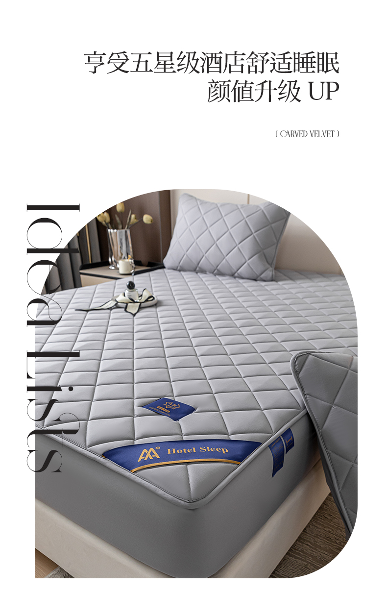 • 91家纺网 家纺一手货源 找家纺 芬晴家纺   2024新款酒店款夹棉床笠 秋实-星灰