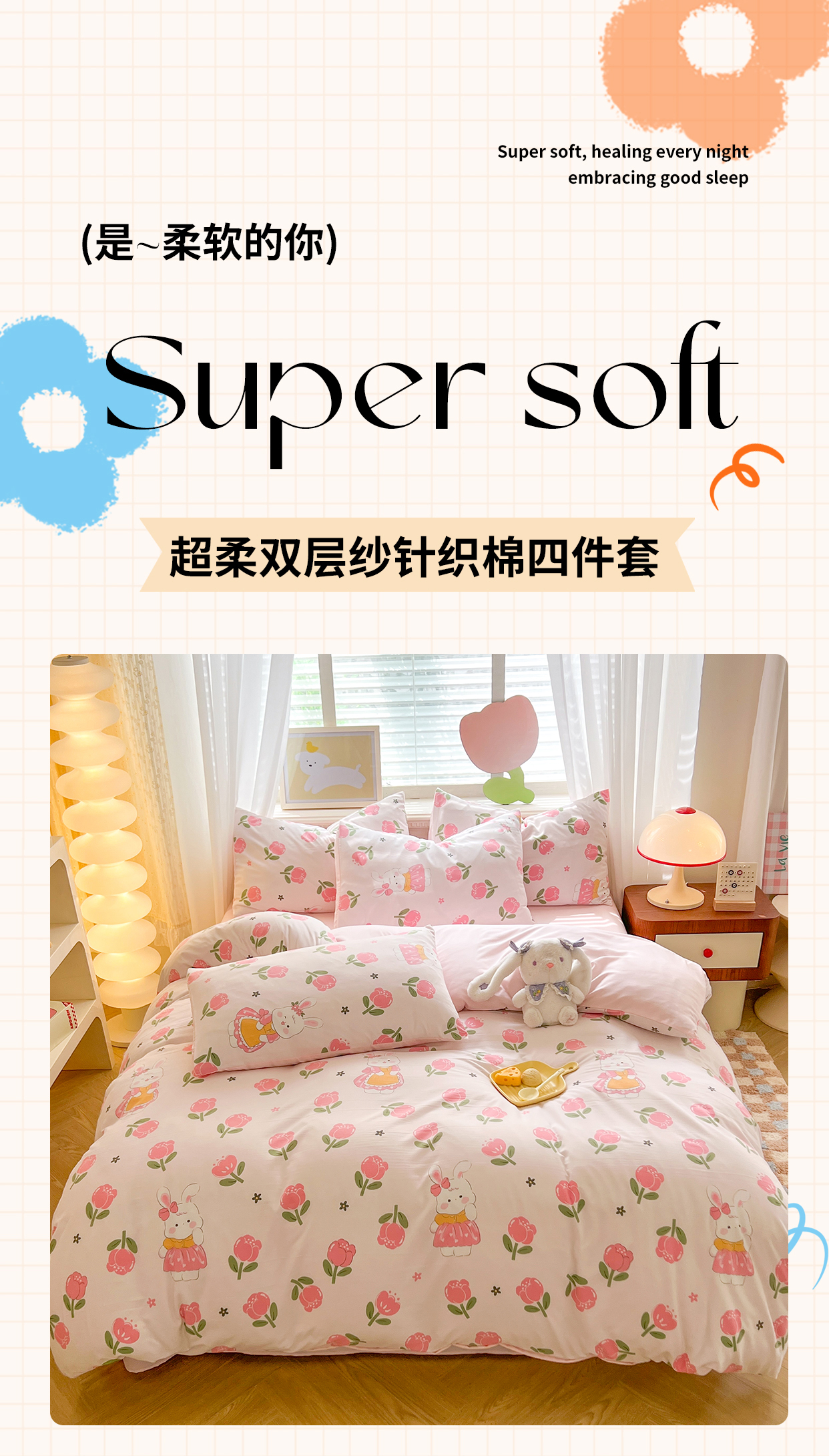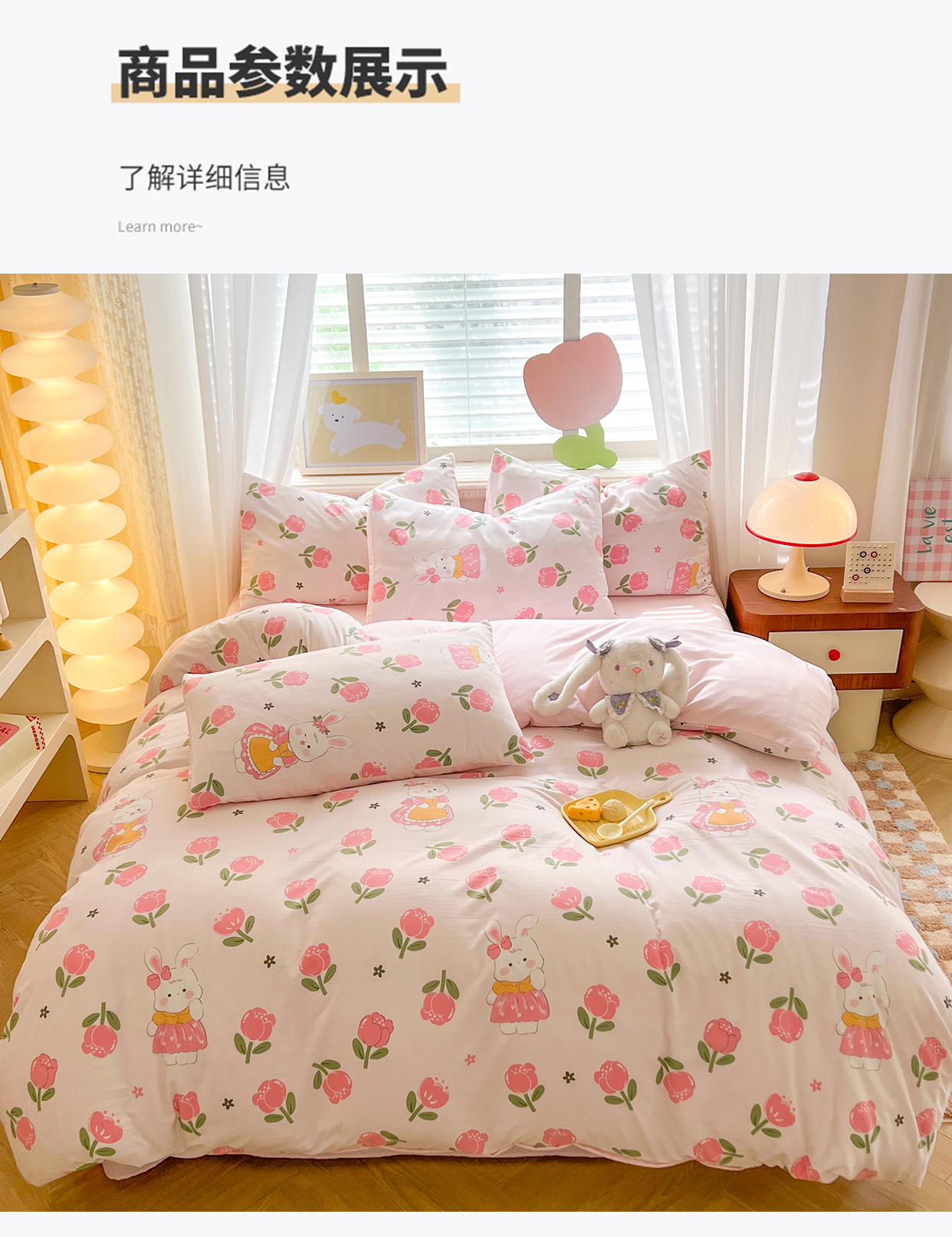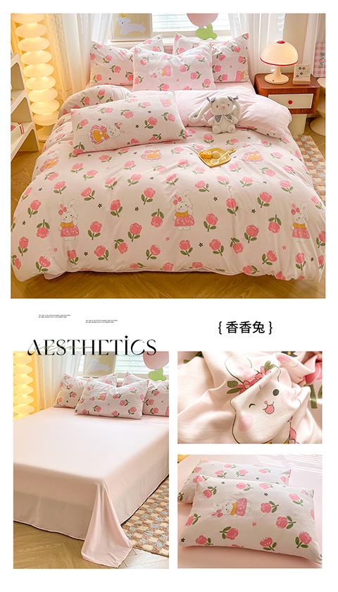当前位置: 91家纺网 > 商品网购 > 床品套件 > 四件套 > 水洗棉四件套 > 妖妖家纺 2024新款超柔软糯水洗云朵棉印花四季款四件套 香香兔