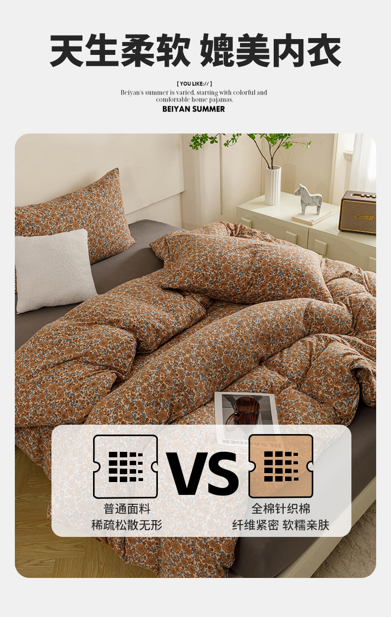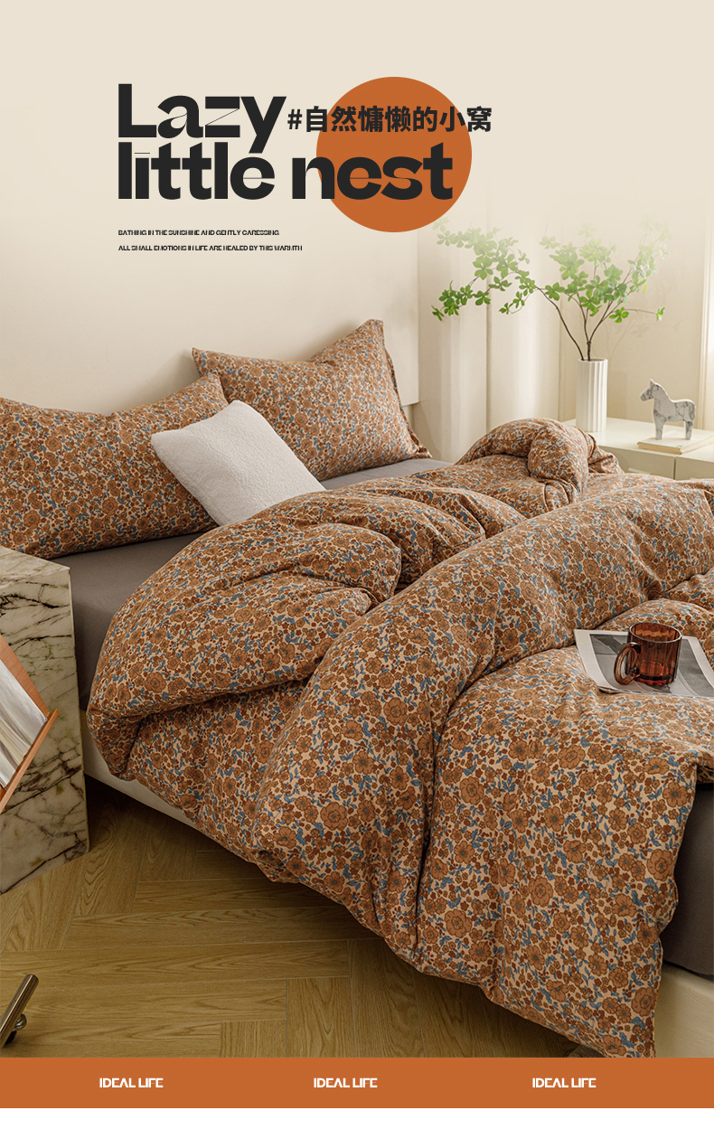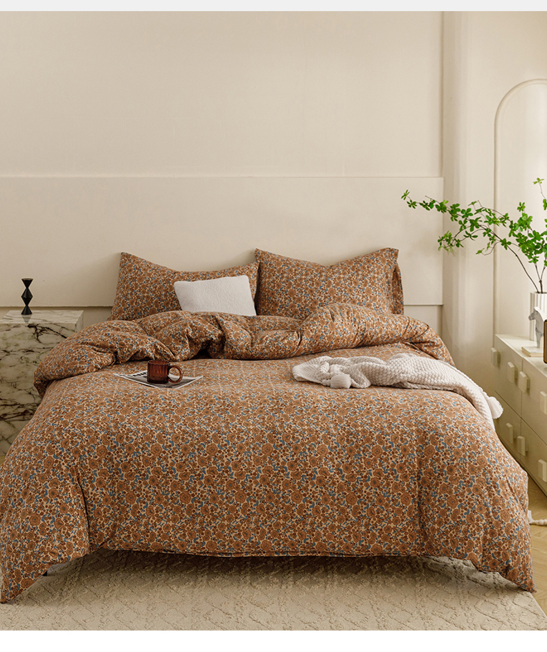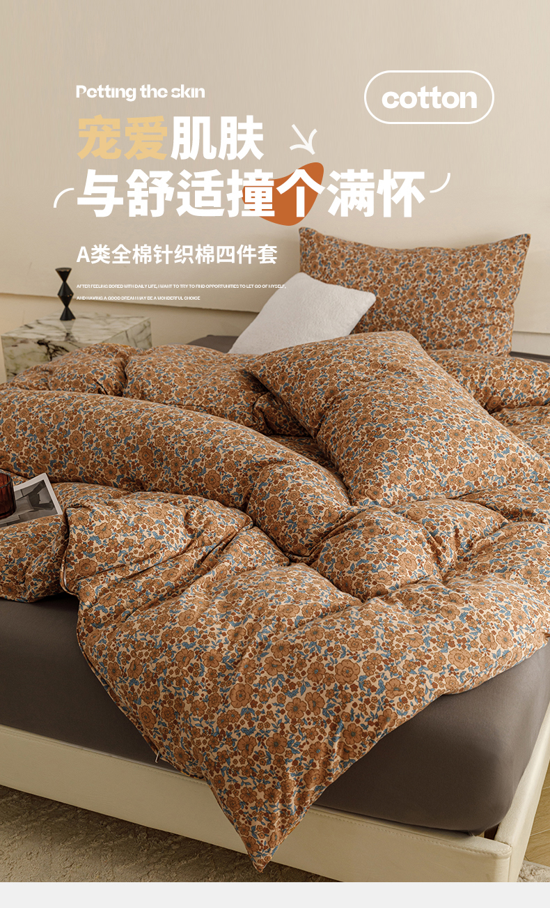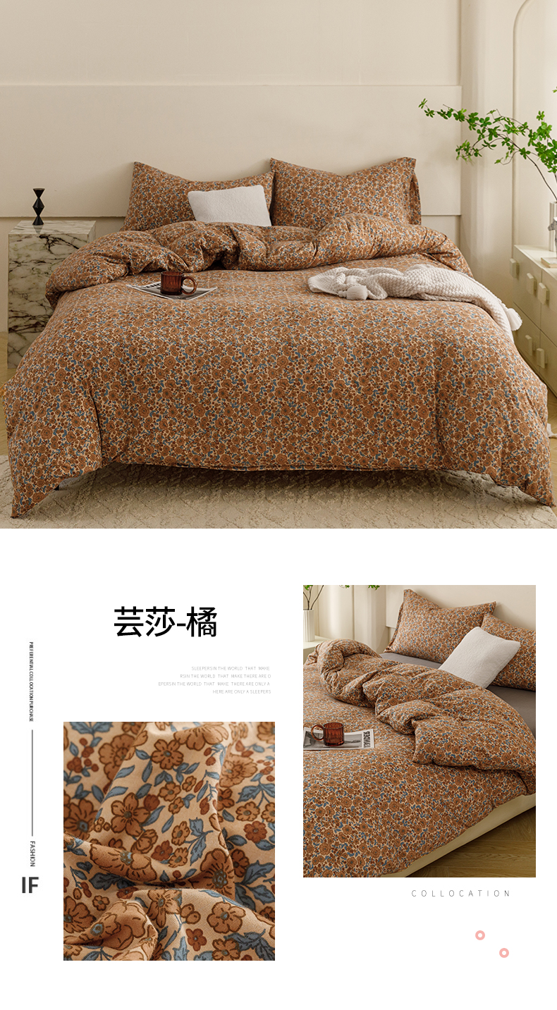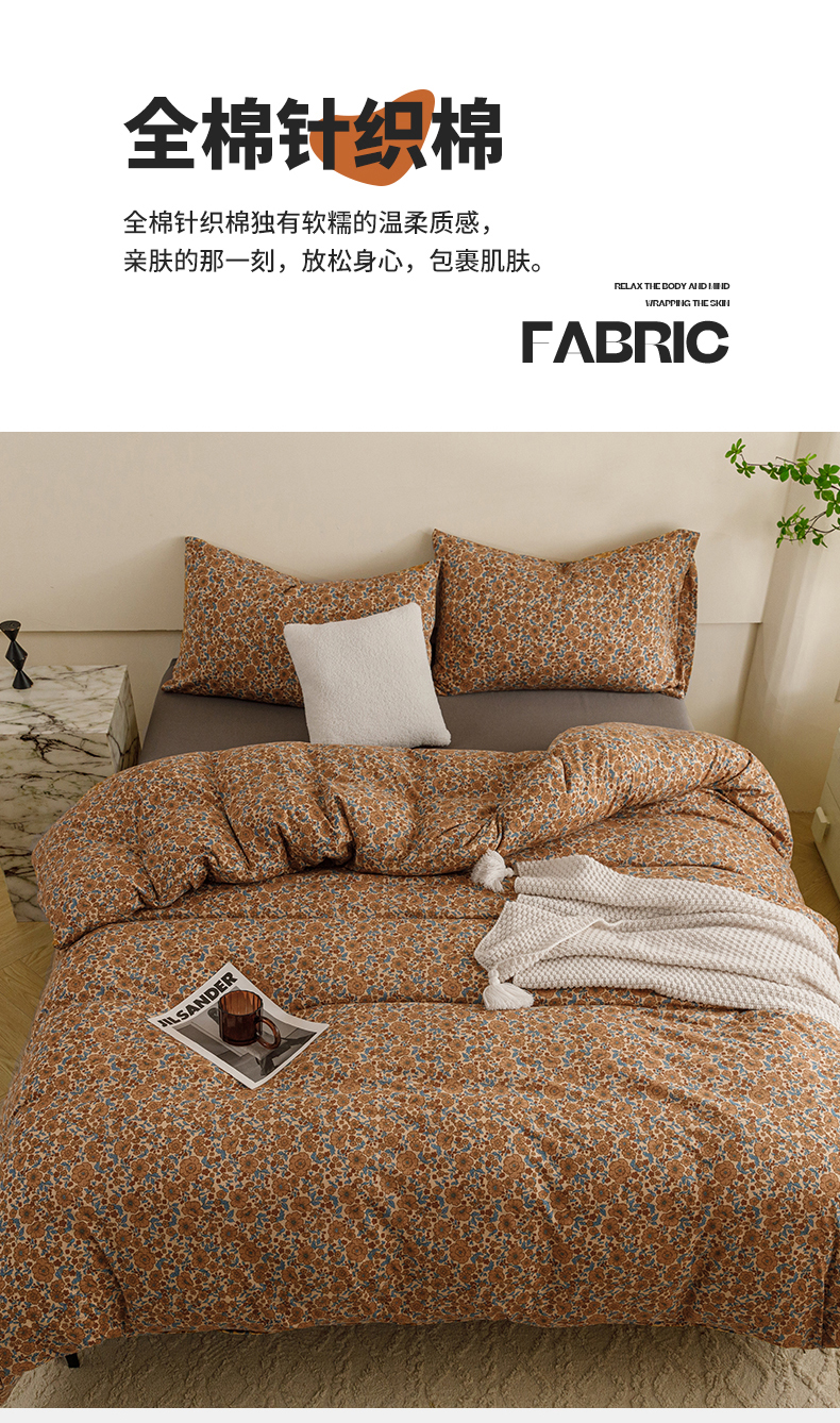 商品名称:瑞米家居 2024新款A类全棉针织棉四件套 芸莎-橘