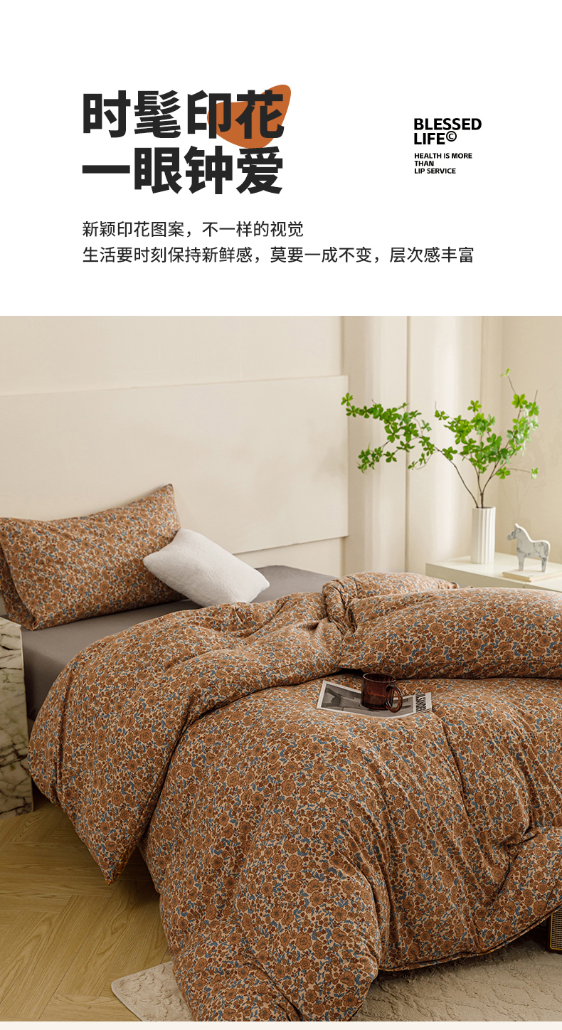 (总)瑞米家居 2025新款A类全棉双层纱四件套,翱吉-咖,草莓之恋-米,蝶花蕊-咖,蝶梦-咖,花晨-咖,快乐小熊-粉,快乐小熊-米,伊然-咖