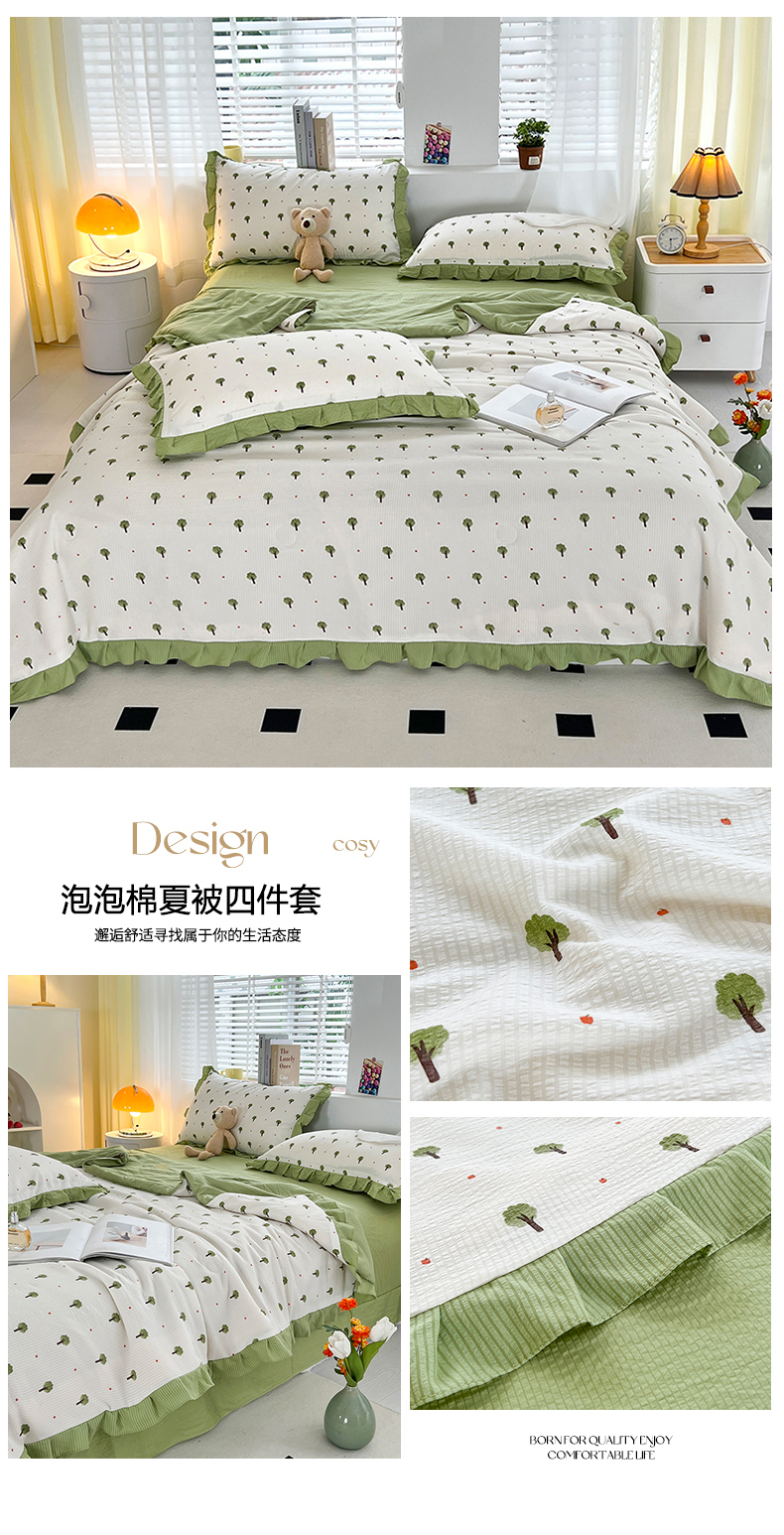 商品名称:梦莱斯 2024新款时尚舒适泡泡棉夏被四件套 森林