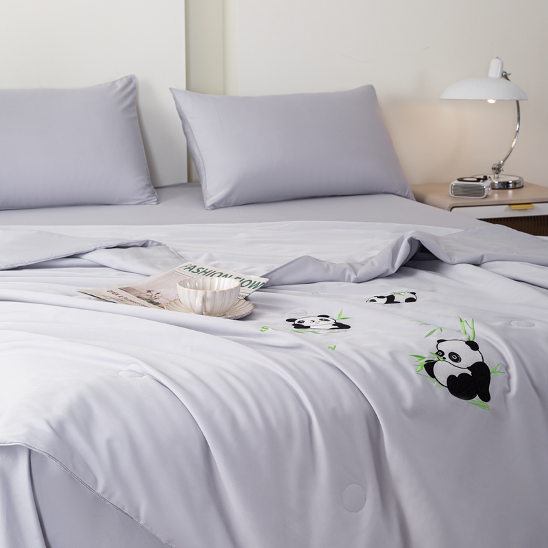 商品名称:锦禾穗 2024新款40支天丝绣花夏被空调被-萌仔仔 月光灰