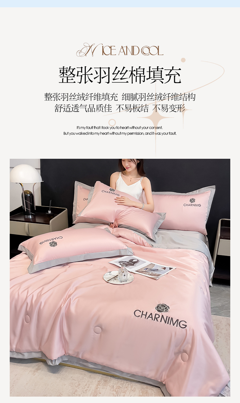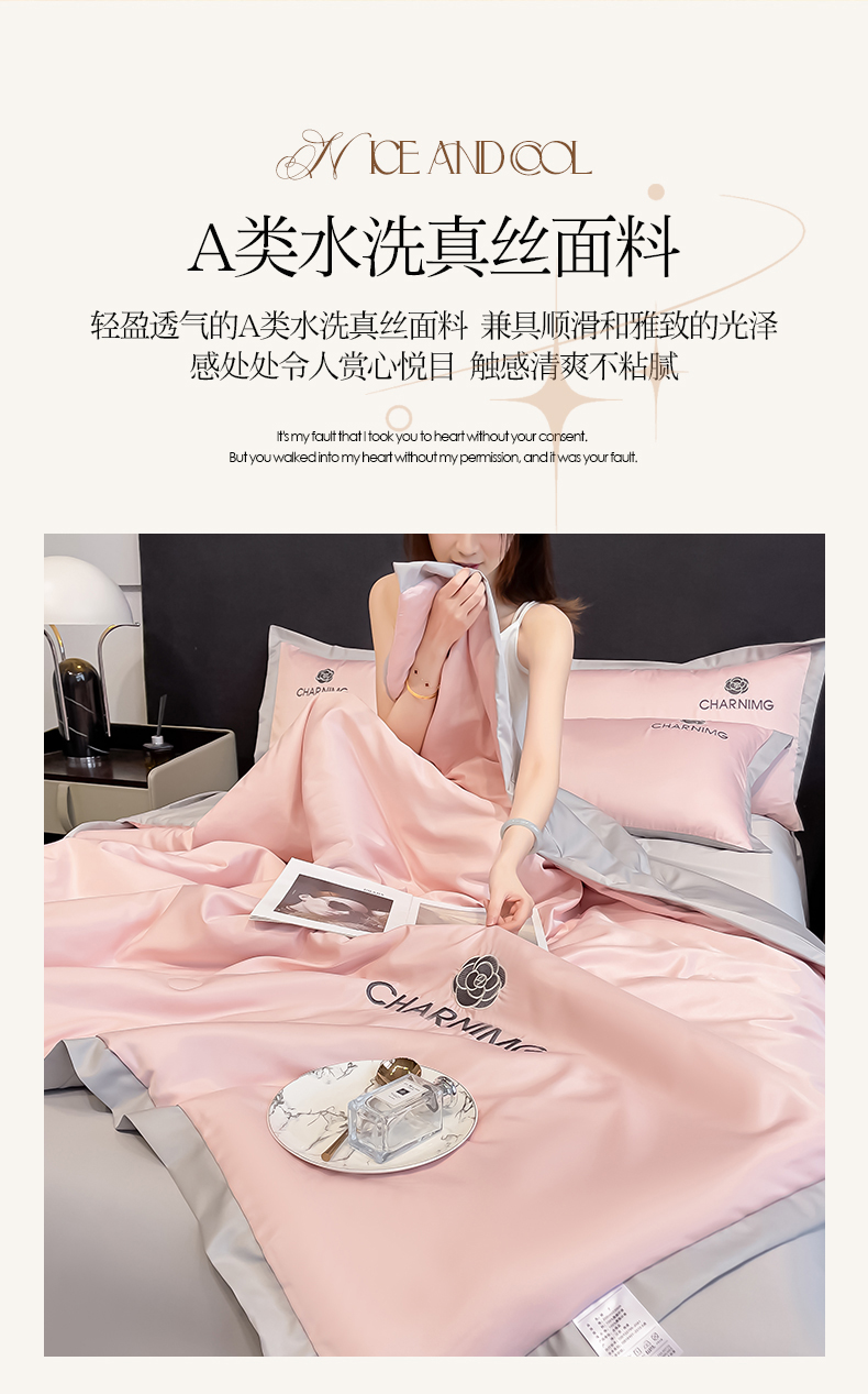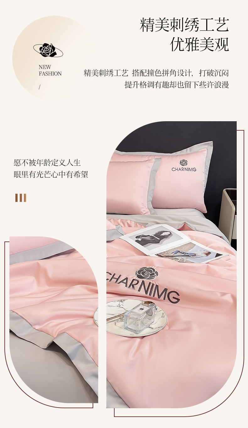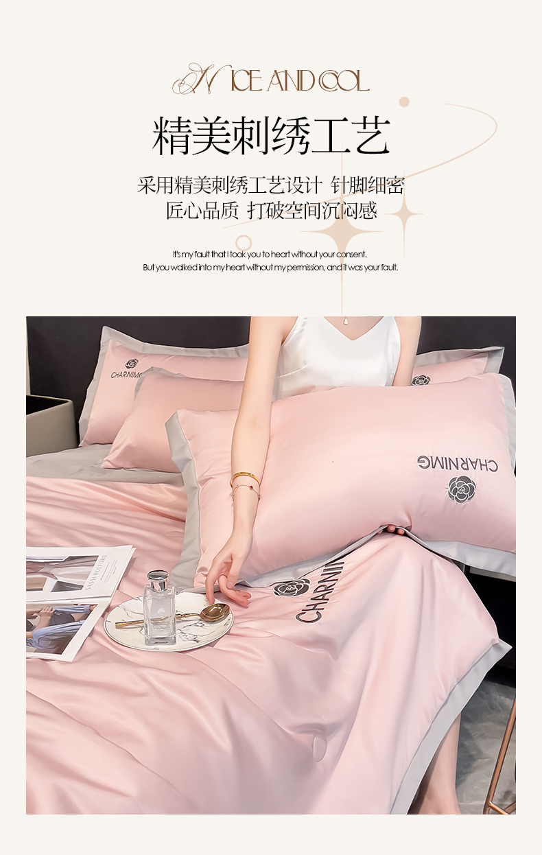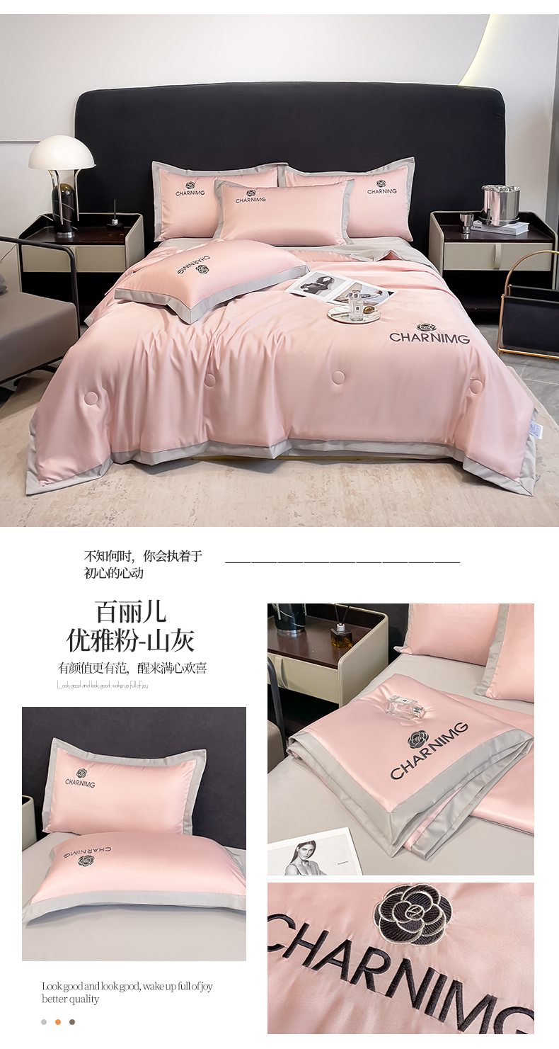 • 91家纺网 家纺一手货源 找家纺 江暮云家纺 2025新款A类水洗真丝刺绣夏被四件套-百丽儿 百丽儿优雅粉-山灰