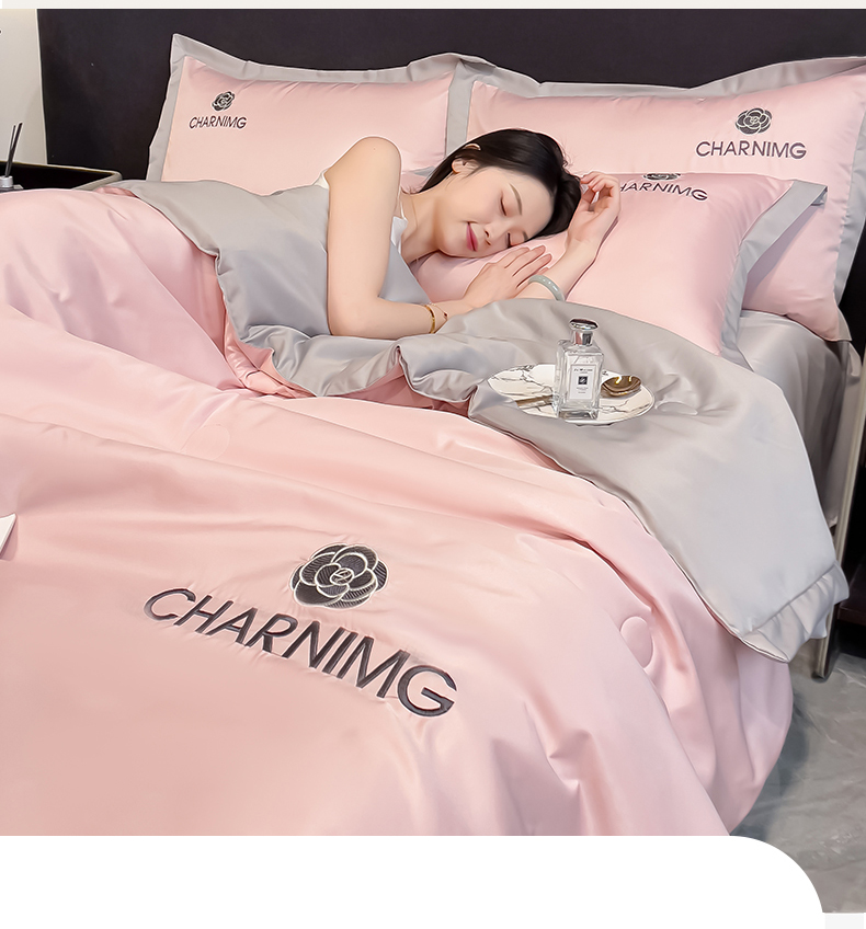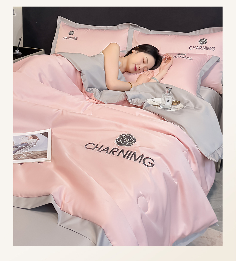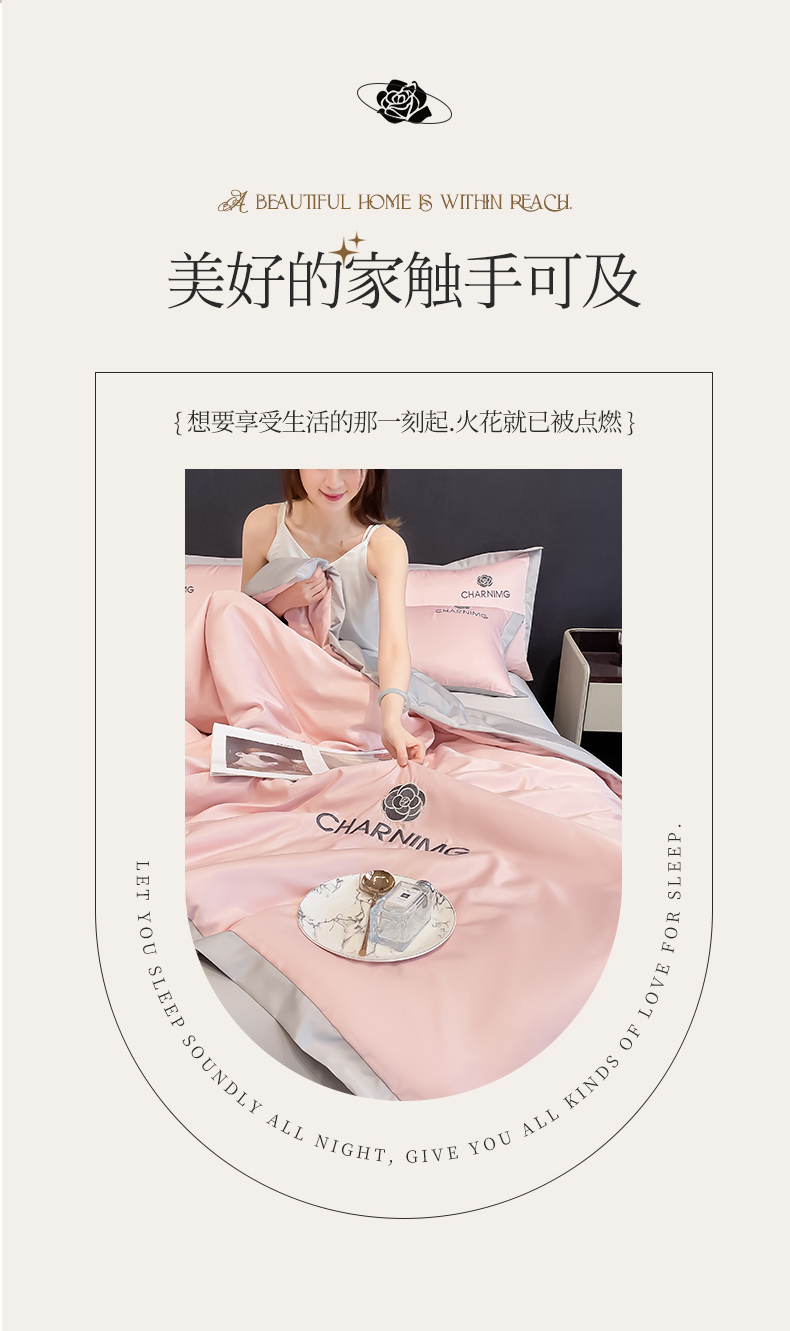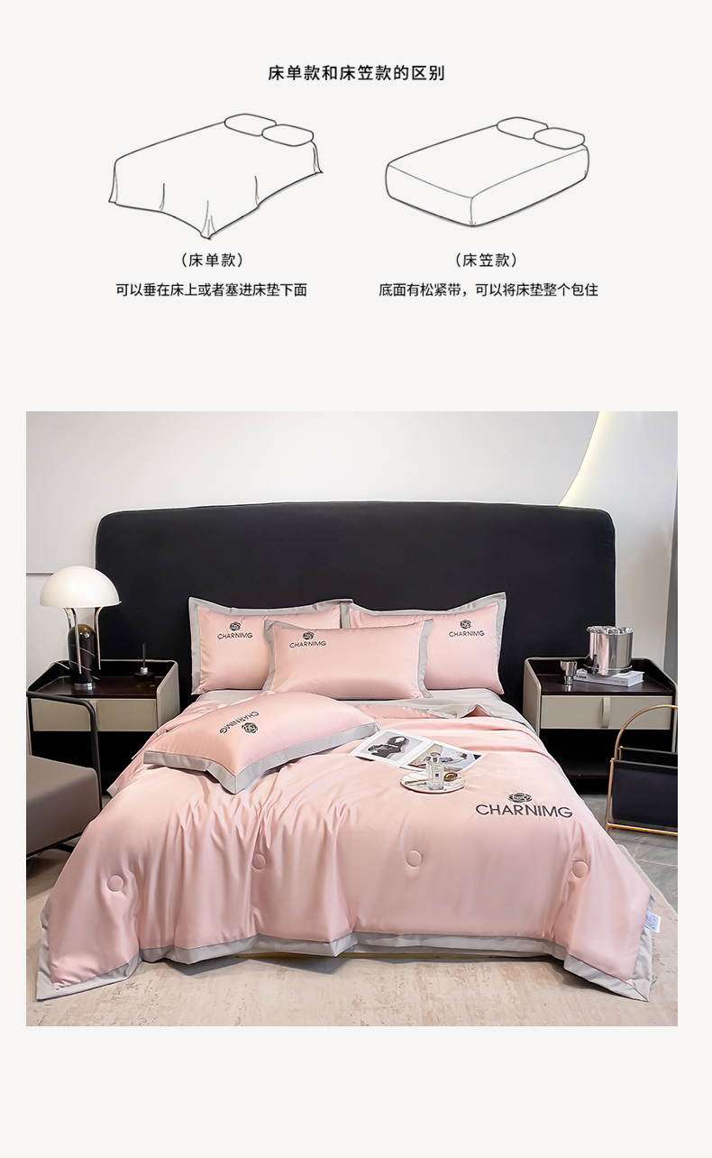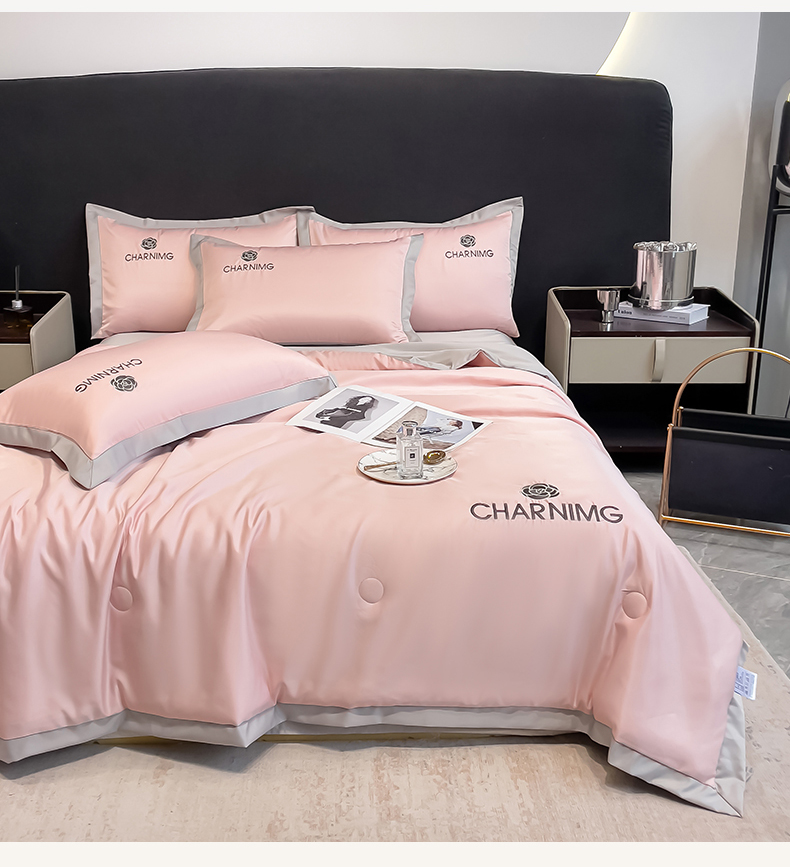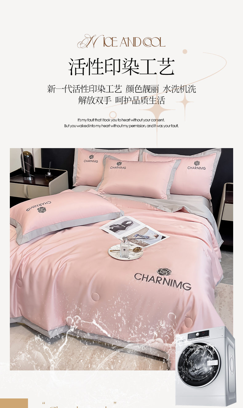 • 91家纺网 家纺一手货源 找家纺 江暮云家纺 2025新款A类水洗真丝刺绣夏被四件套-百丽儿 百丽儿优雅粉-山灰