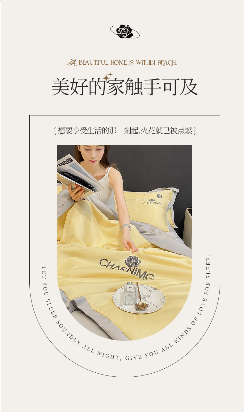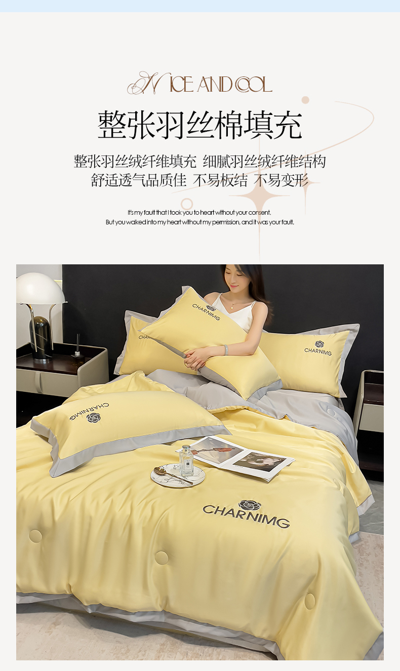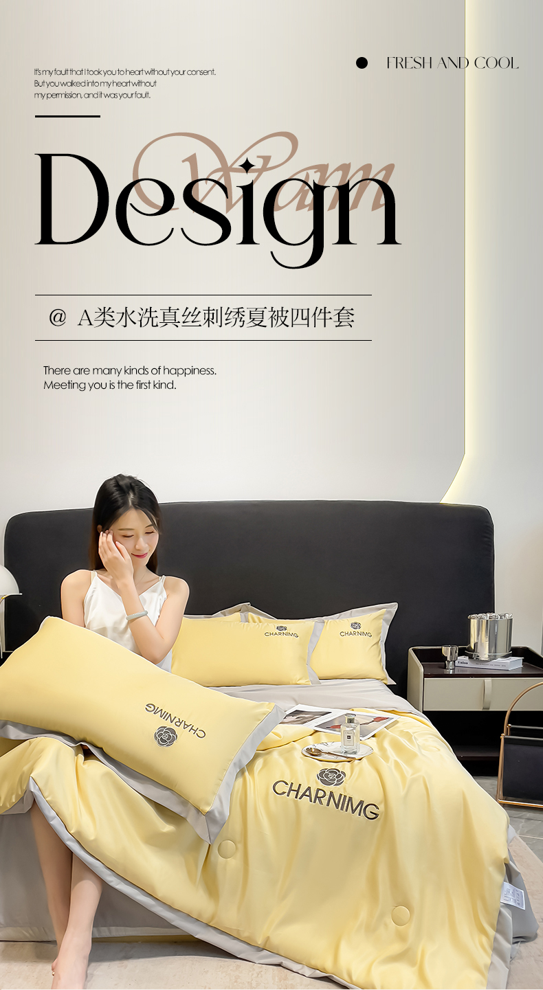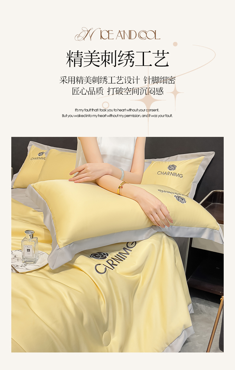 • 91家纺网 家纺一手货源 找家纺 江暮云家纺 2025新款A类水洗真丝刺绣夏被四件套-百丽儿 百丽儿芝士黄-山灰
