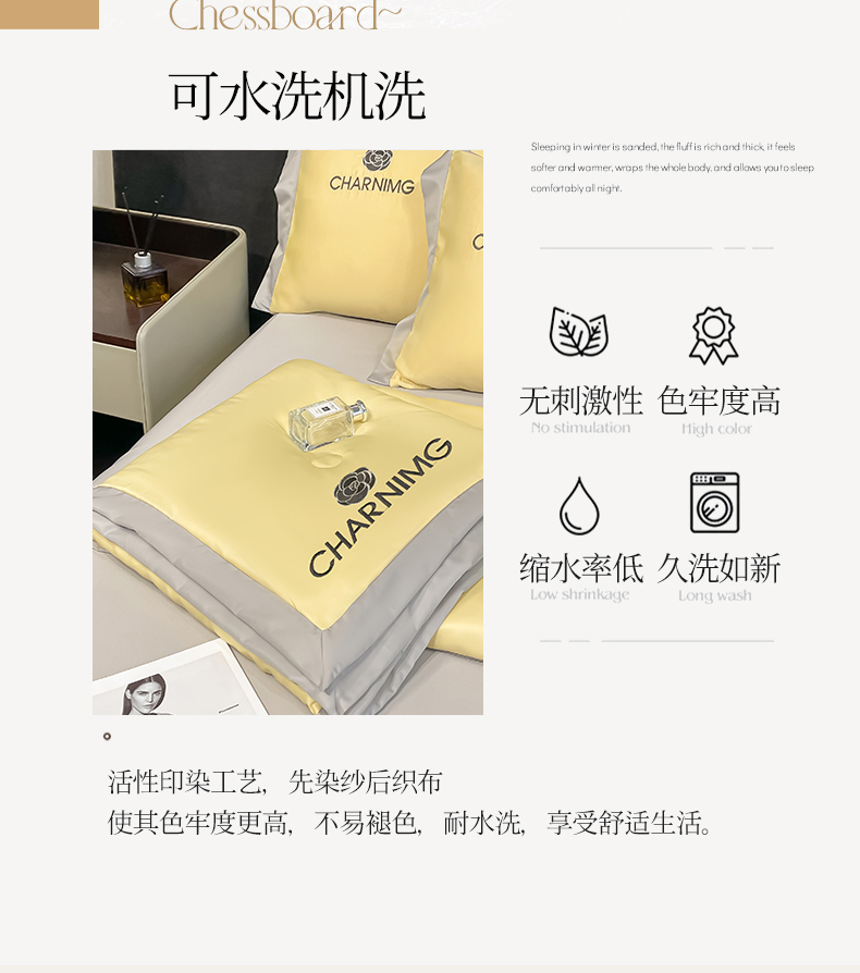 当前位置: 91家纺网 > 商品网购 > 被子 > 夏被 > 江暮云家纺 2025新款A类水洗真丝刺绣夏被四件套-百丽儿 百丽儿芝士黄-山灰