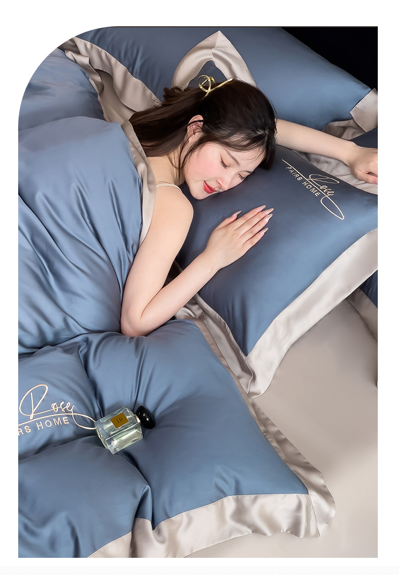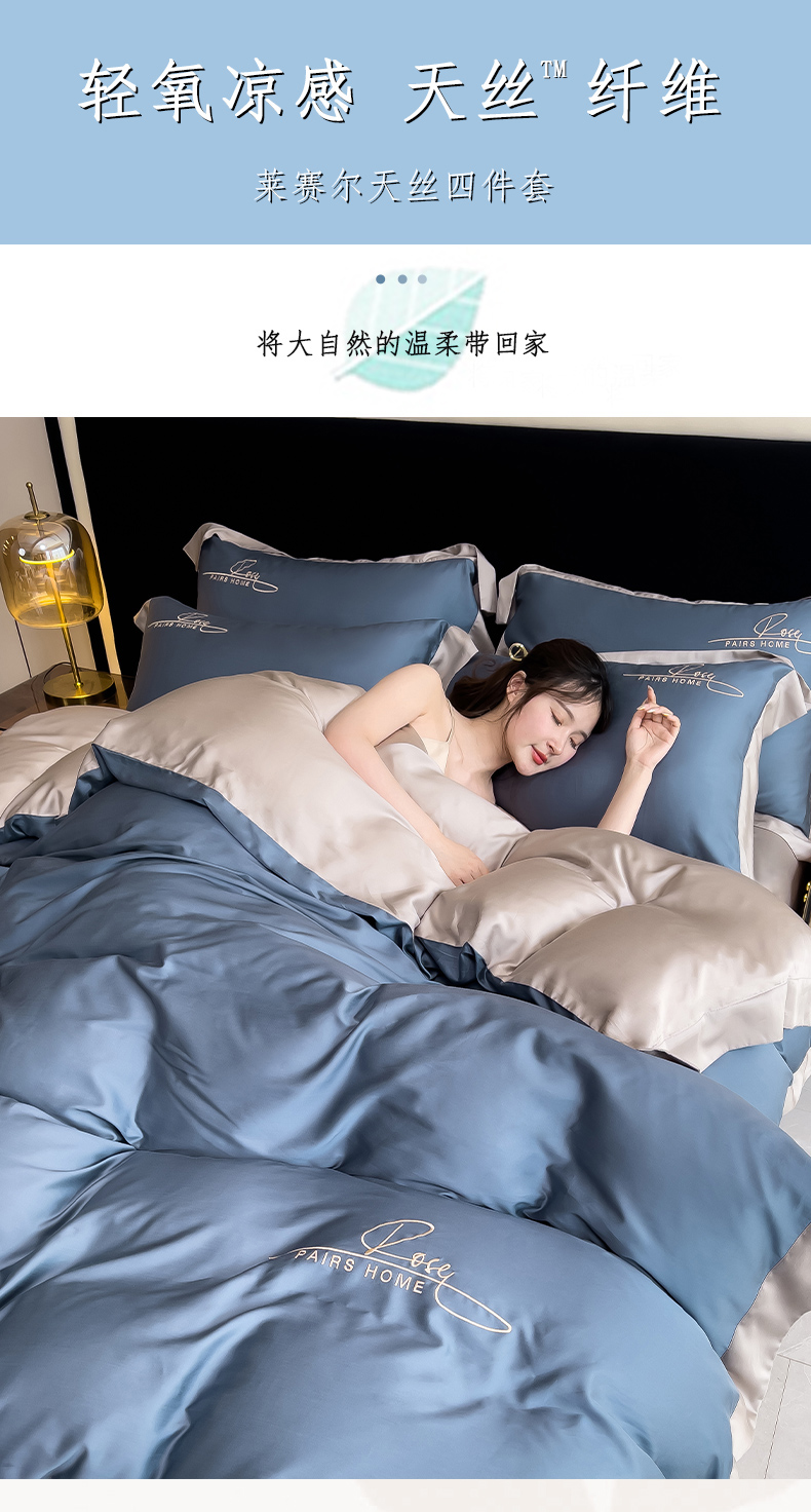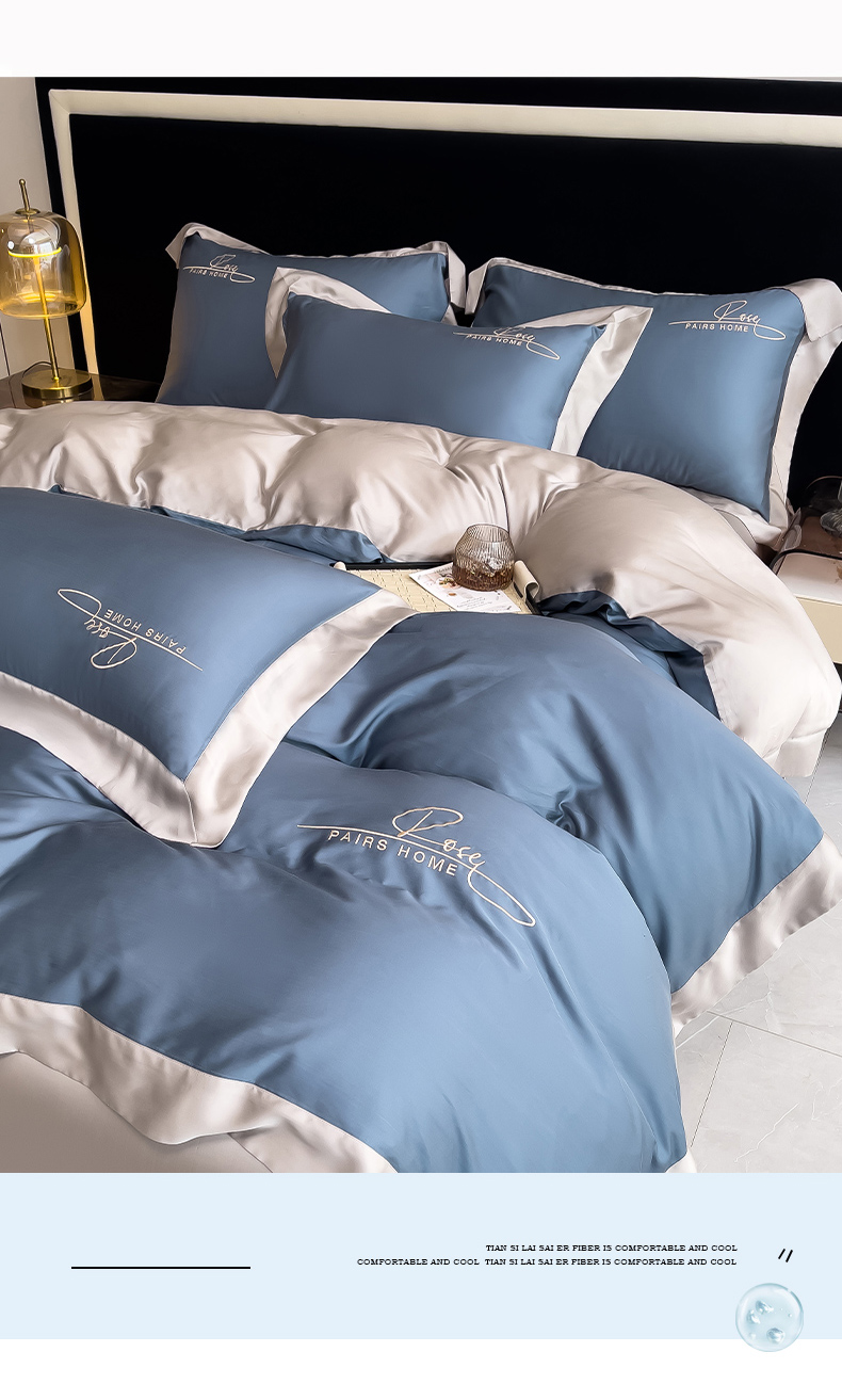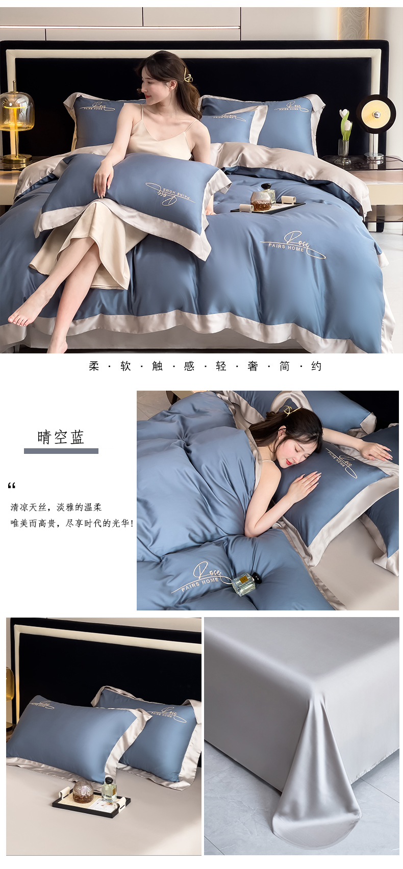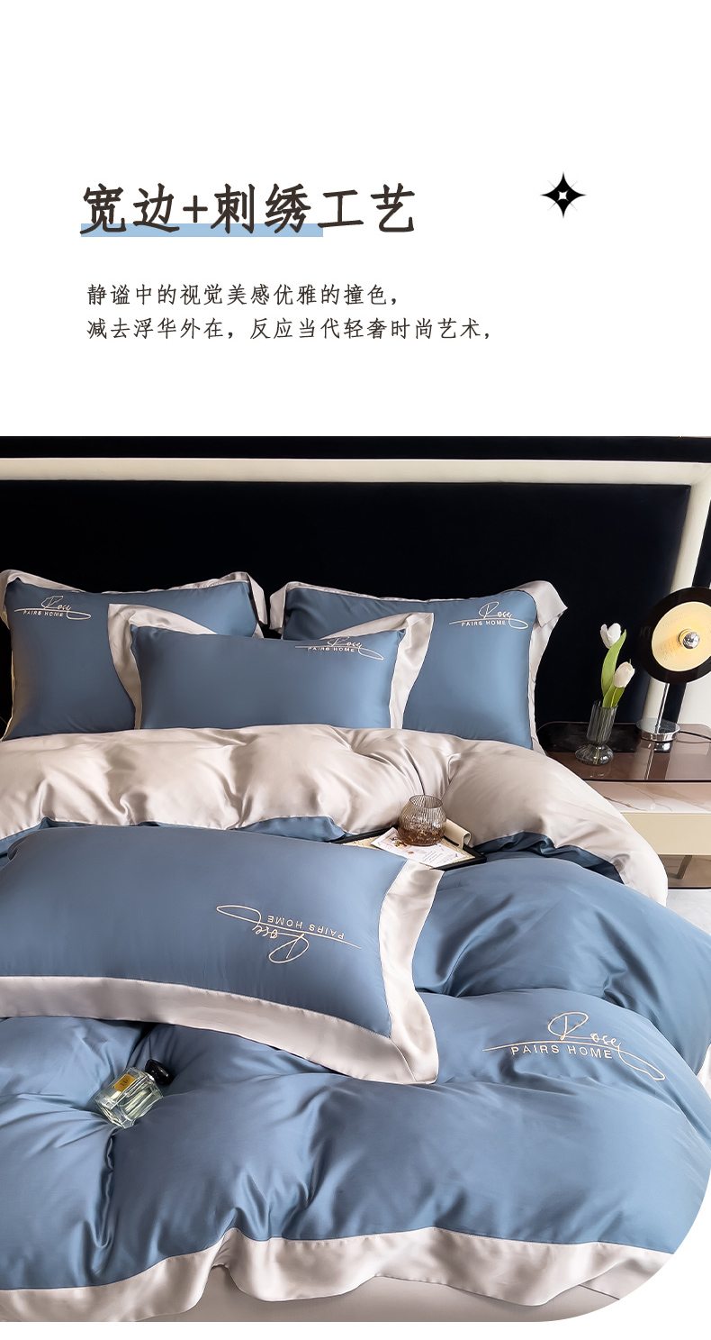 瑞驰家纺 2024新款60兰精天丝四件套-罗莎琳 晴空蓝