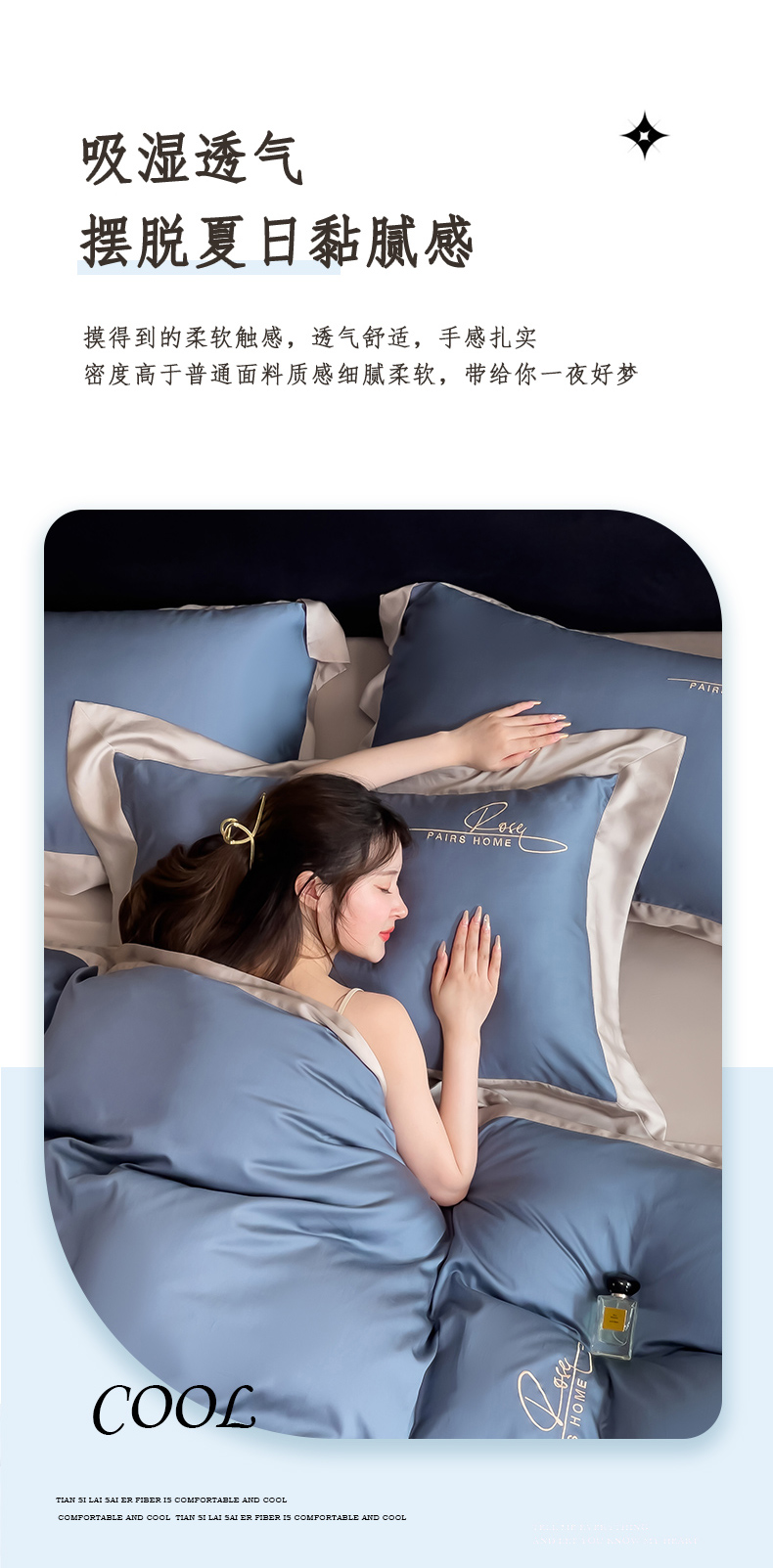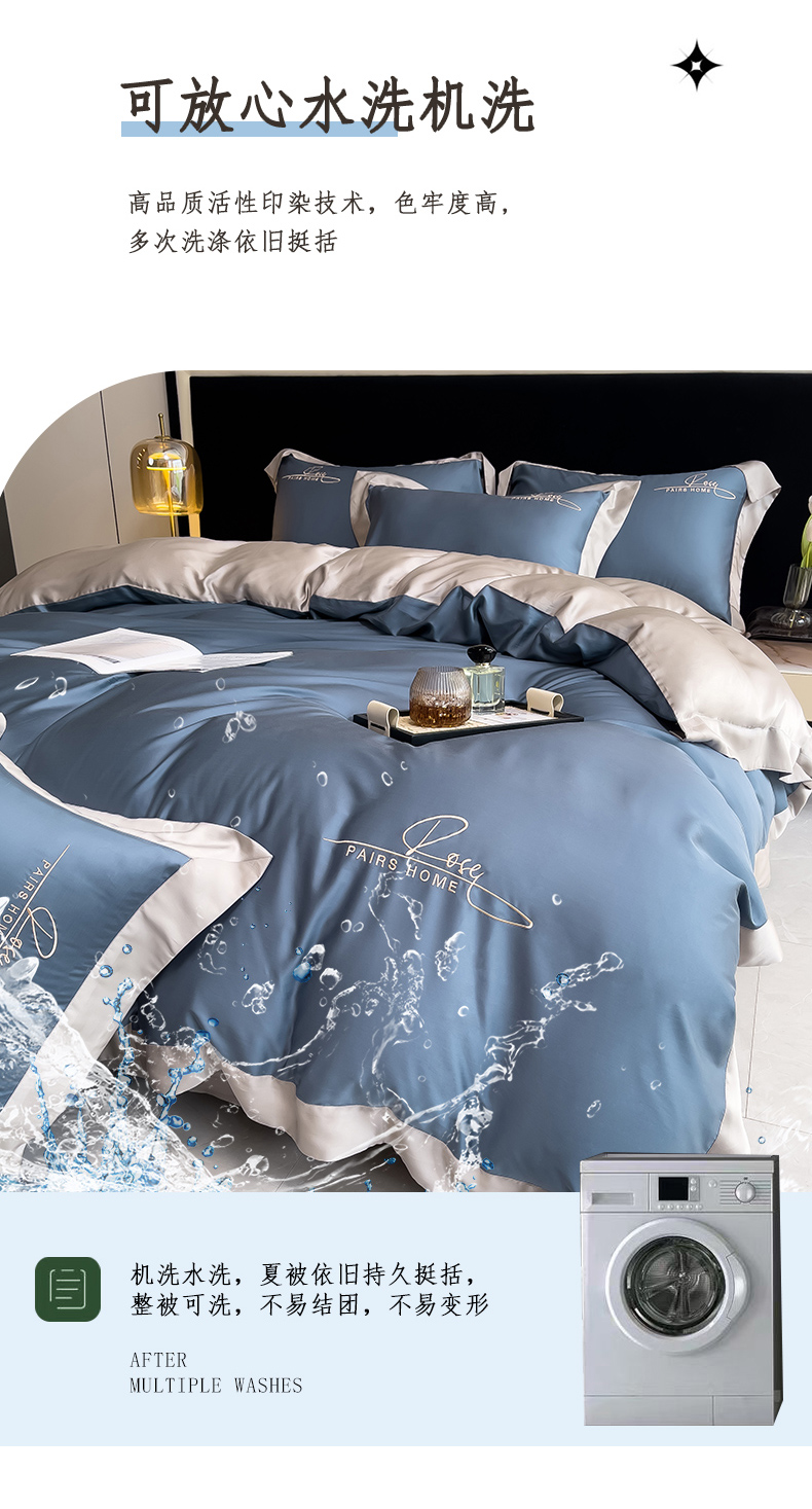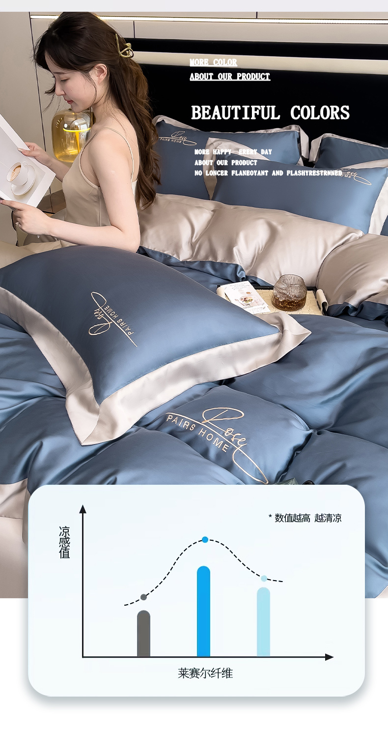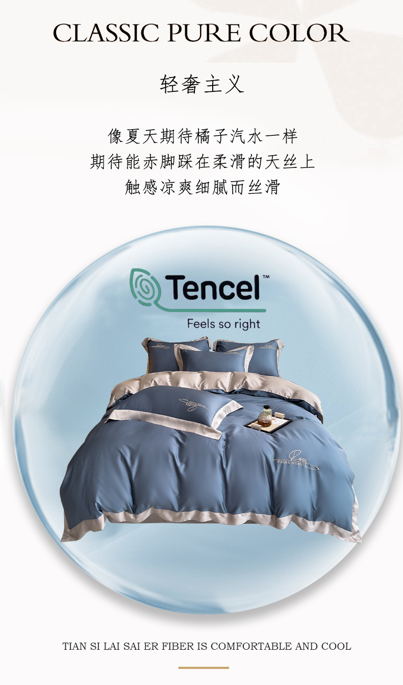 瑞驰家纺 2024新款60兰精天丝四件套-罗莎琳 晴空蓝