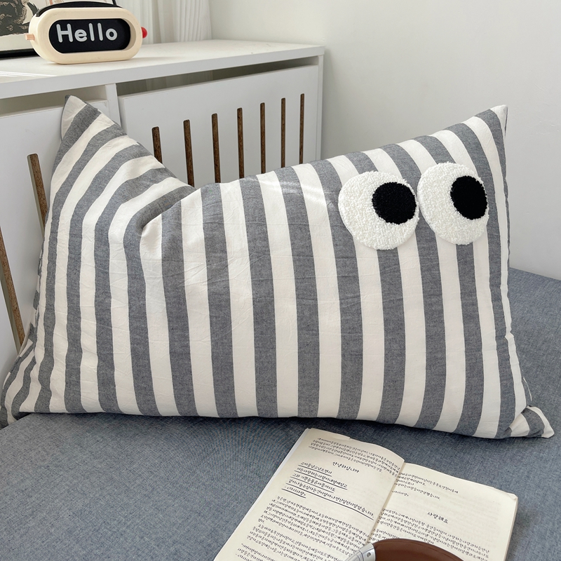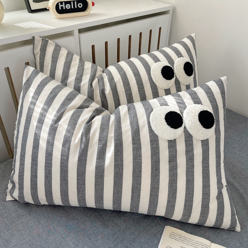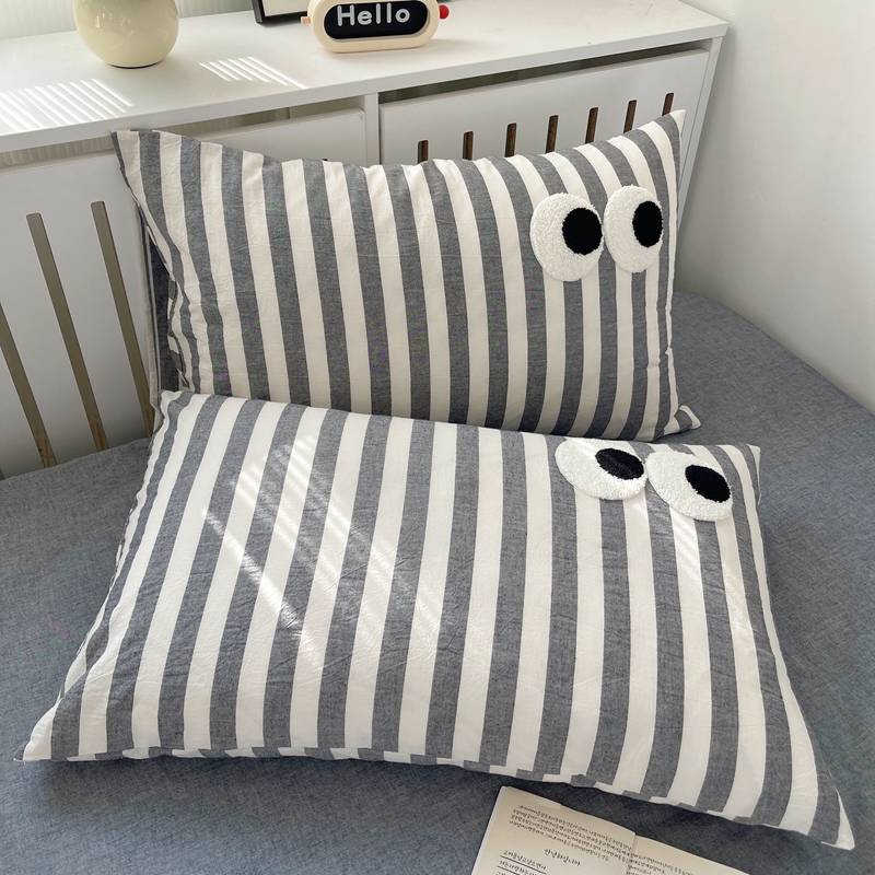 丽涵家纺 2024新款全棉色织水洗棉单品枕套-毛巾绣大眼系列 48*74cm枕套/只 ins混搭4-宽条黑