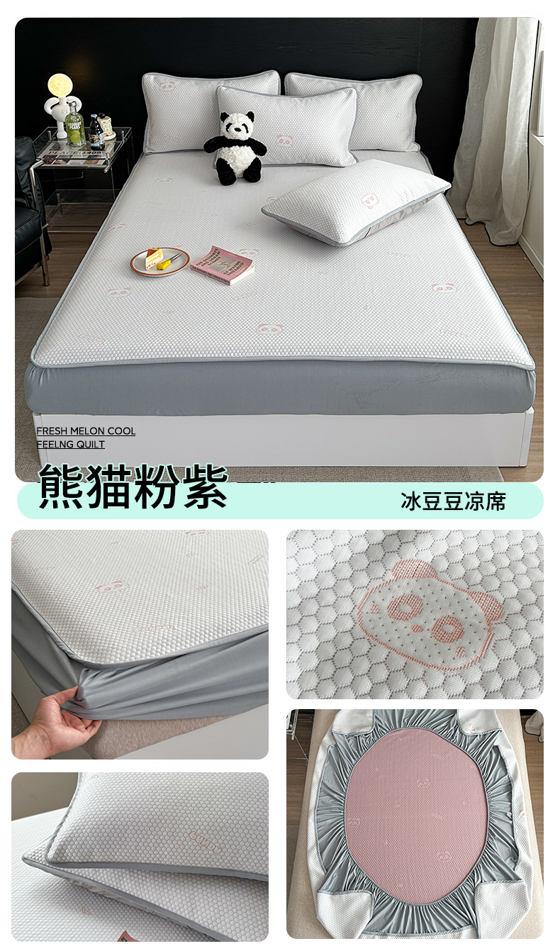 商品名称:2024 新款A类立体提花冰豆豆凉感抗菌凉席床笠款 熊猫粉紫