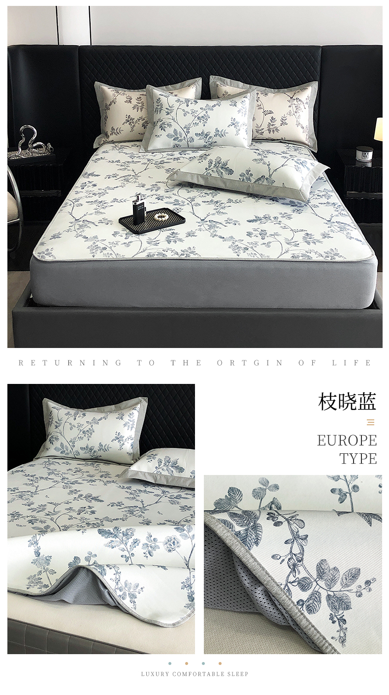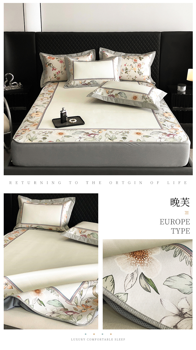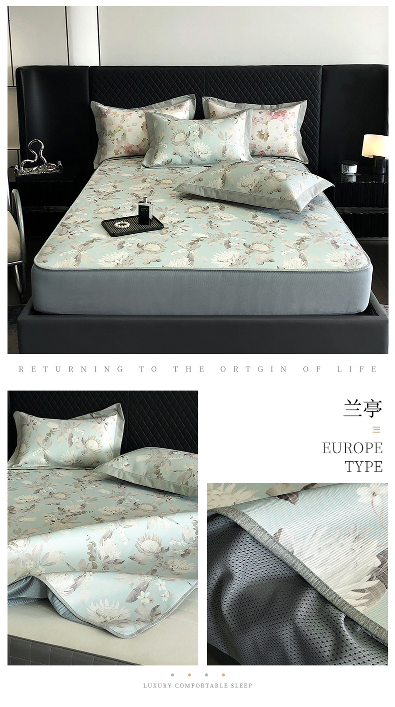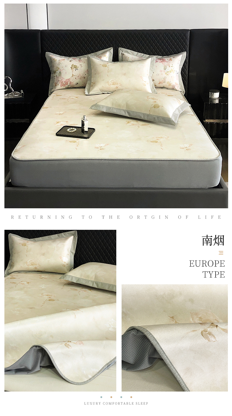 商品名称:(总)三味舒屋 2025新款凉感抗菌防螨印花冰丝养生席手绘系列【花卉】床笠款