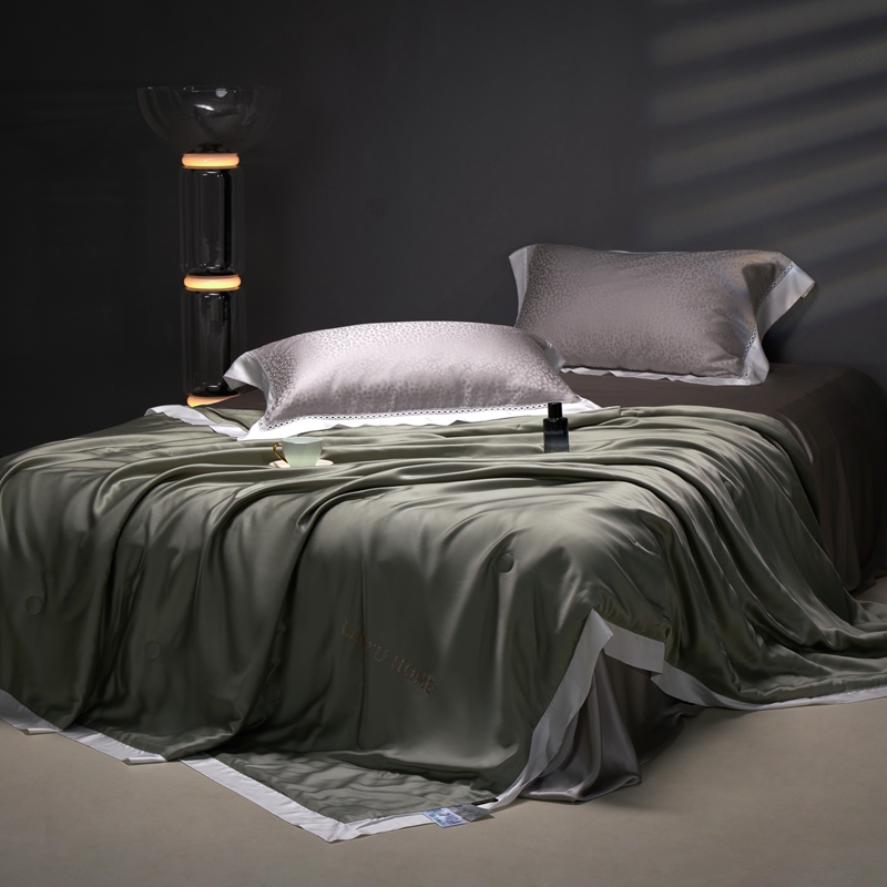 朴罗 ( 原岚图) 2024新款金蚕乳丝大宽边拼角单夏被 绿