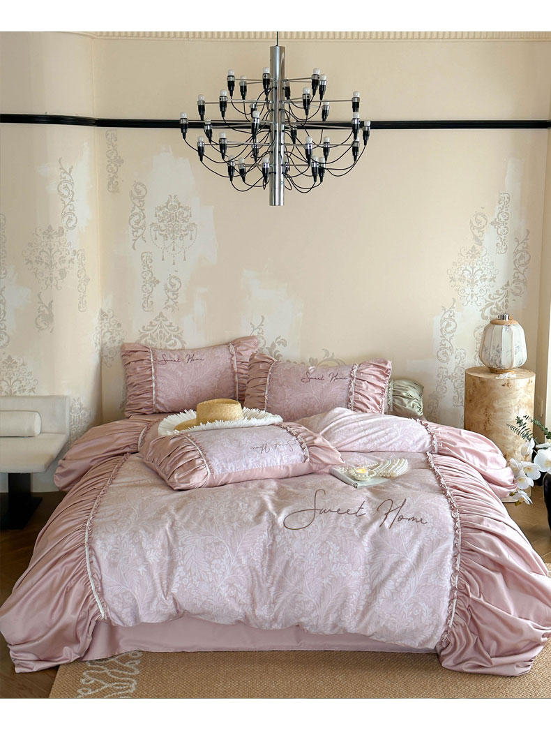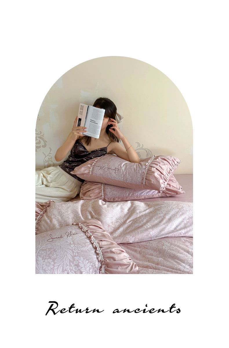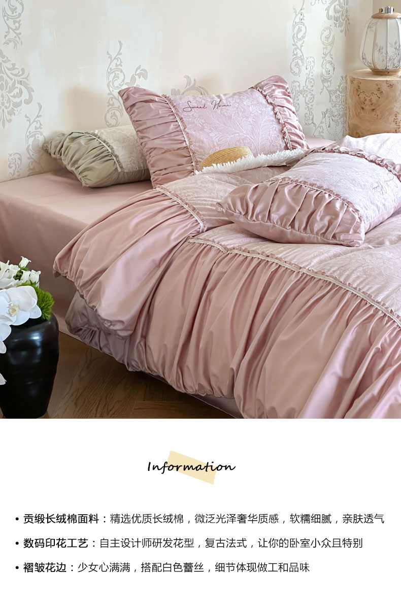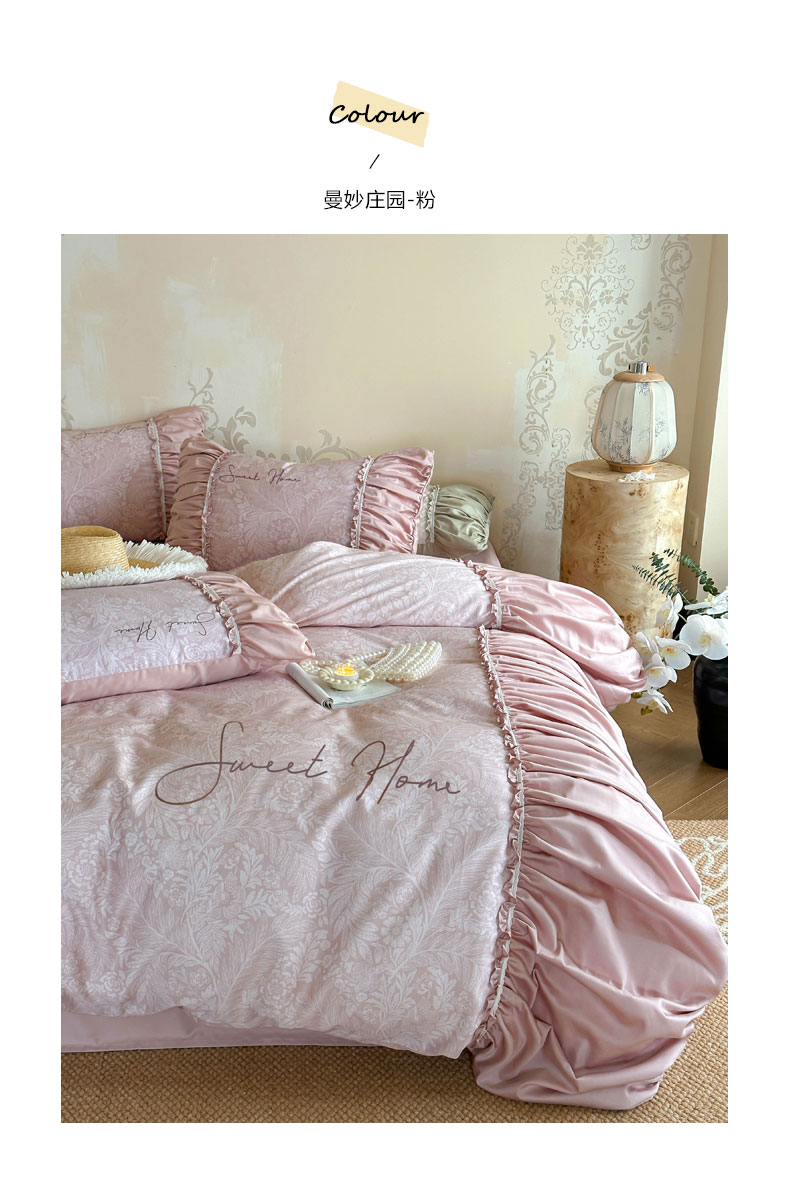 商品名称:惯盈家纺 2024新款100s贡缎长绒棉数码印花四件套-曼妙庄园 曼妙庄园-粉