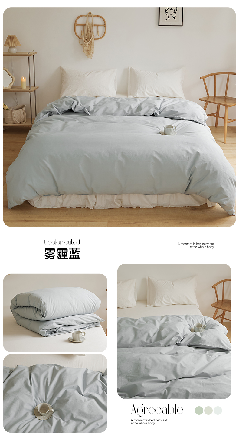 新款40支全棉水洗棉纯色单品系列-单被套 雾霾蓝