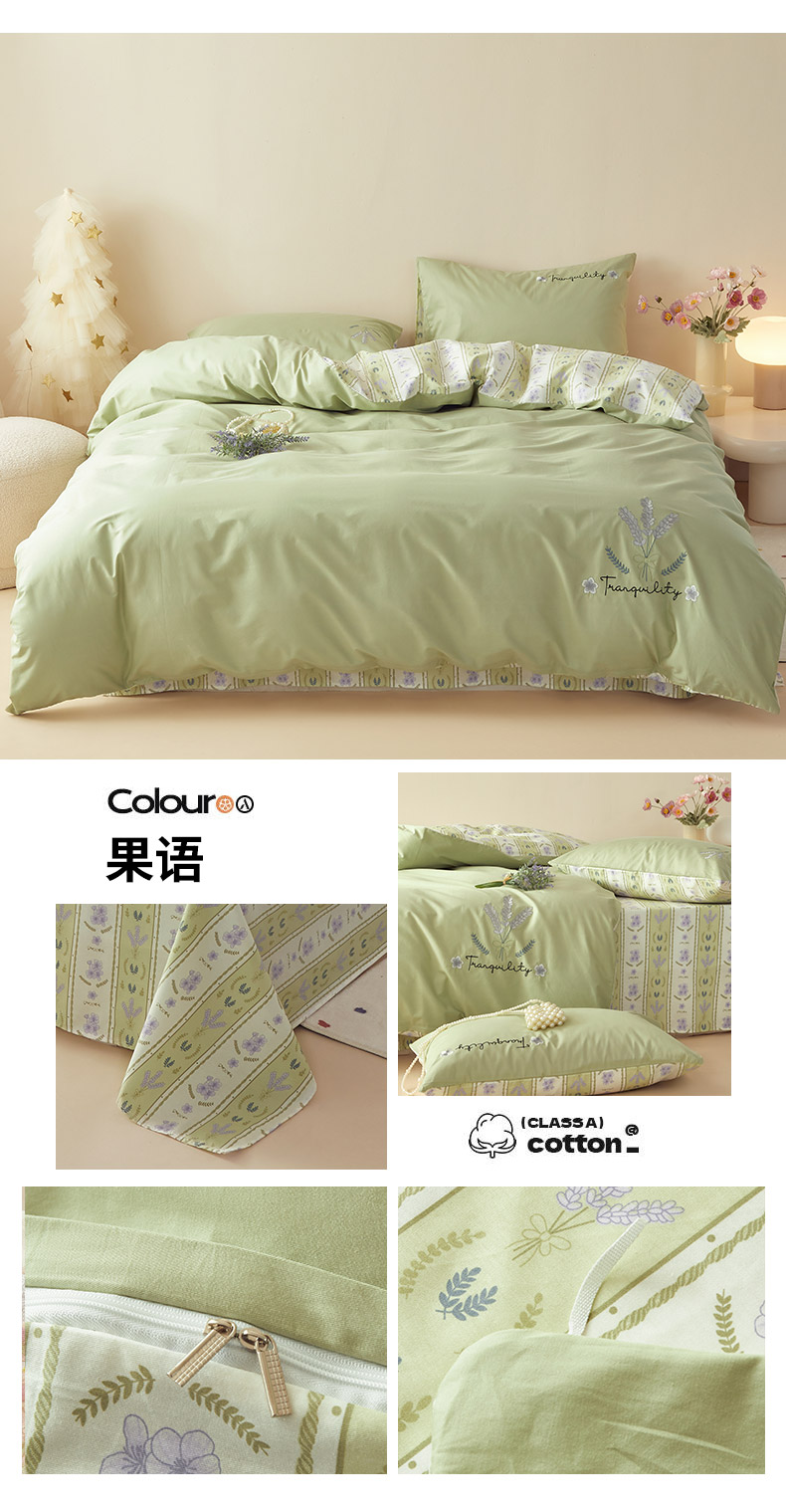 怡家居 2024新款全棉印花加绣花四件套 果语