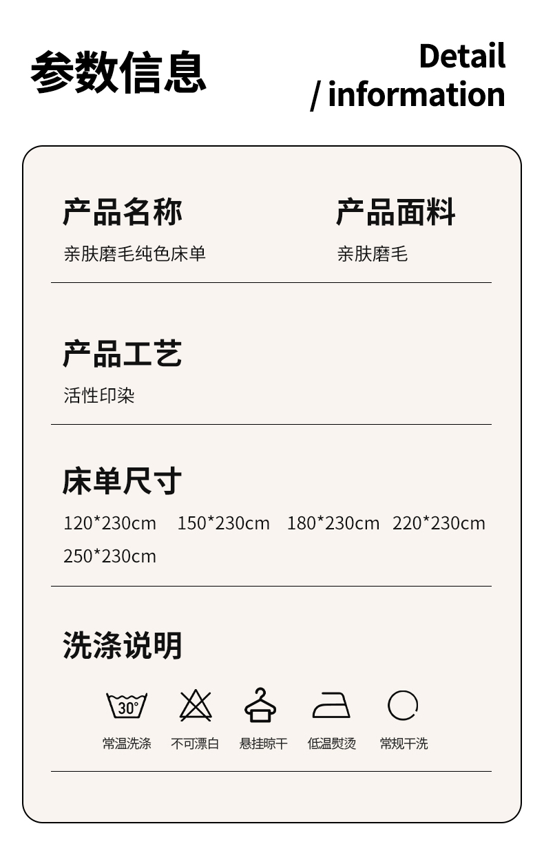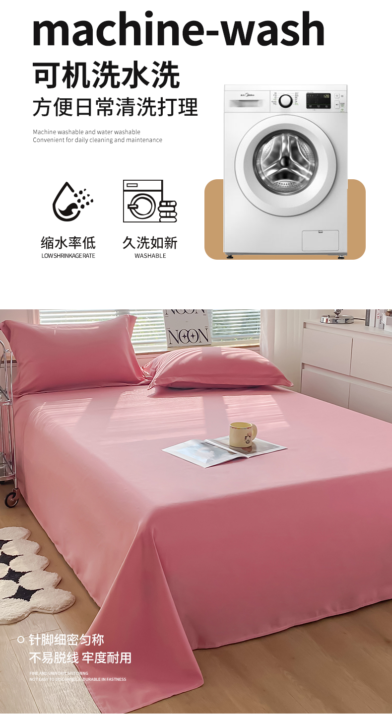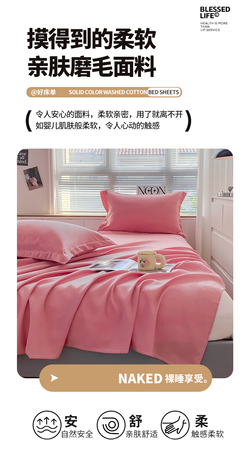 商品名称:恬澳家纺 2024新款亲肤磨毛纯色床单 粉豆沙