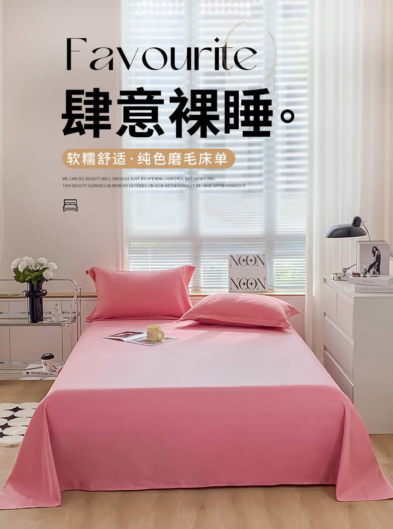 恬澳家纺 2024新款亲肤磨毛纯色床单 粉豆沙