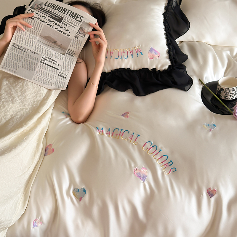 MIU缪家居 2024新款80支兰精天丝简约款四件套-爱情魔法 瑞士白
