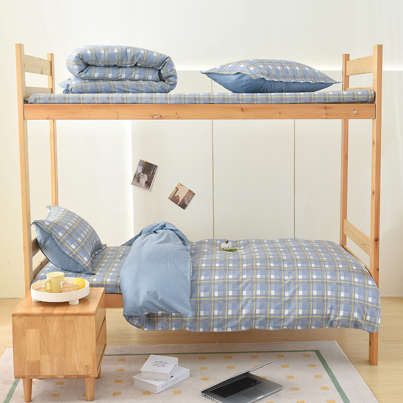 当前位置: 91家纺网 > 商品网购 > 床品套件 > 多件套 > 多件套 > 茗婷家纺 2025款13372纯棉学生宿舍上下铺三六件套 简格~蓝