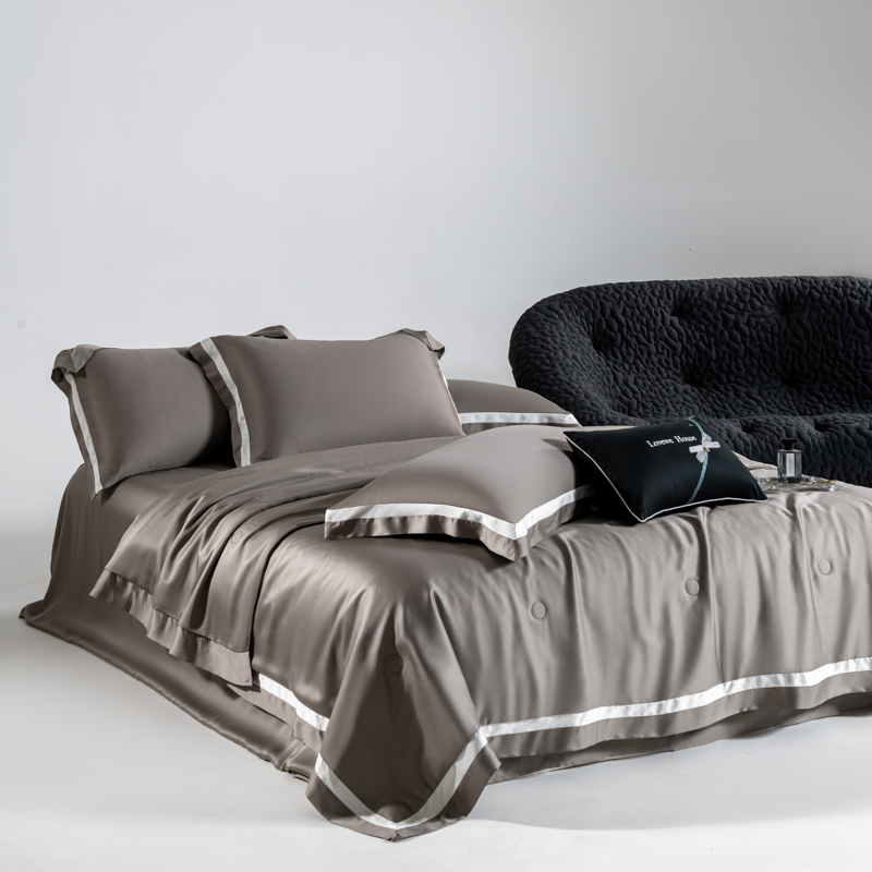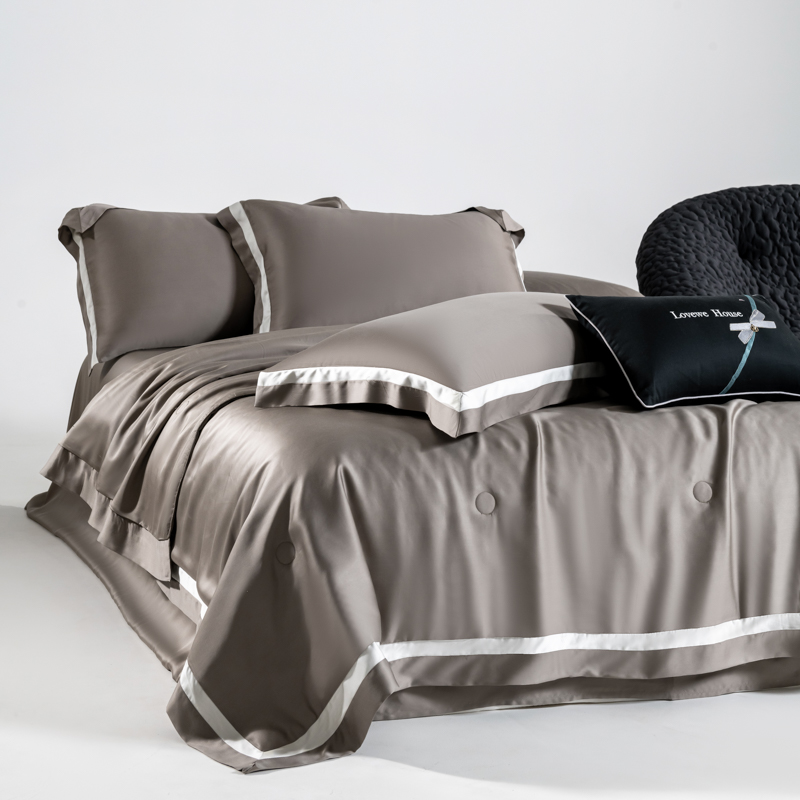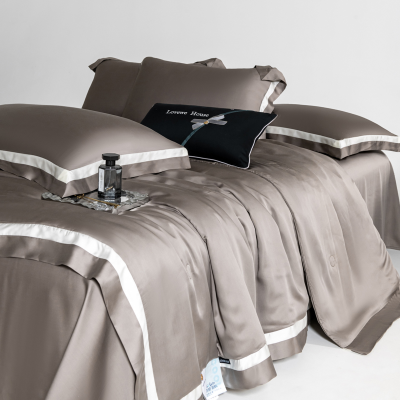 商品名称:若未家居 2025新款50S莱赛尔天丝双拼夏被四件套瑞拉夏被四件套 瑞拉-丝雾棕