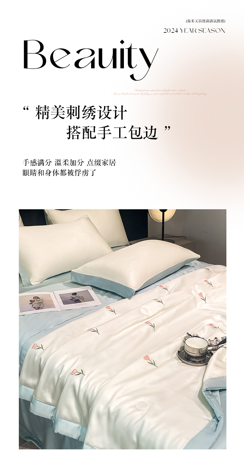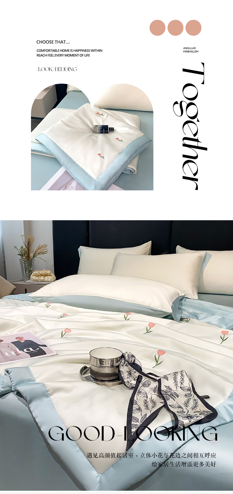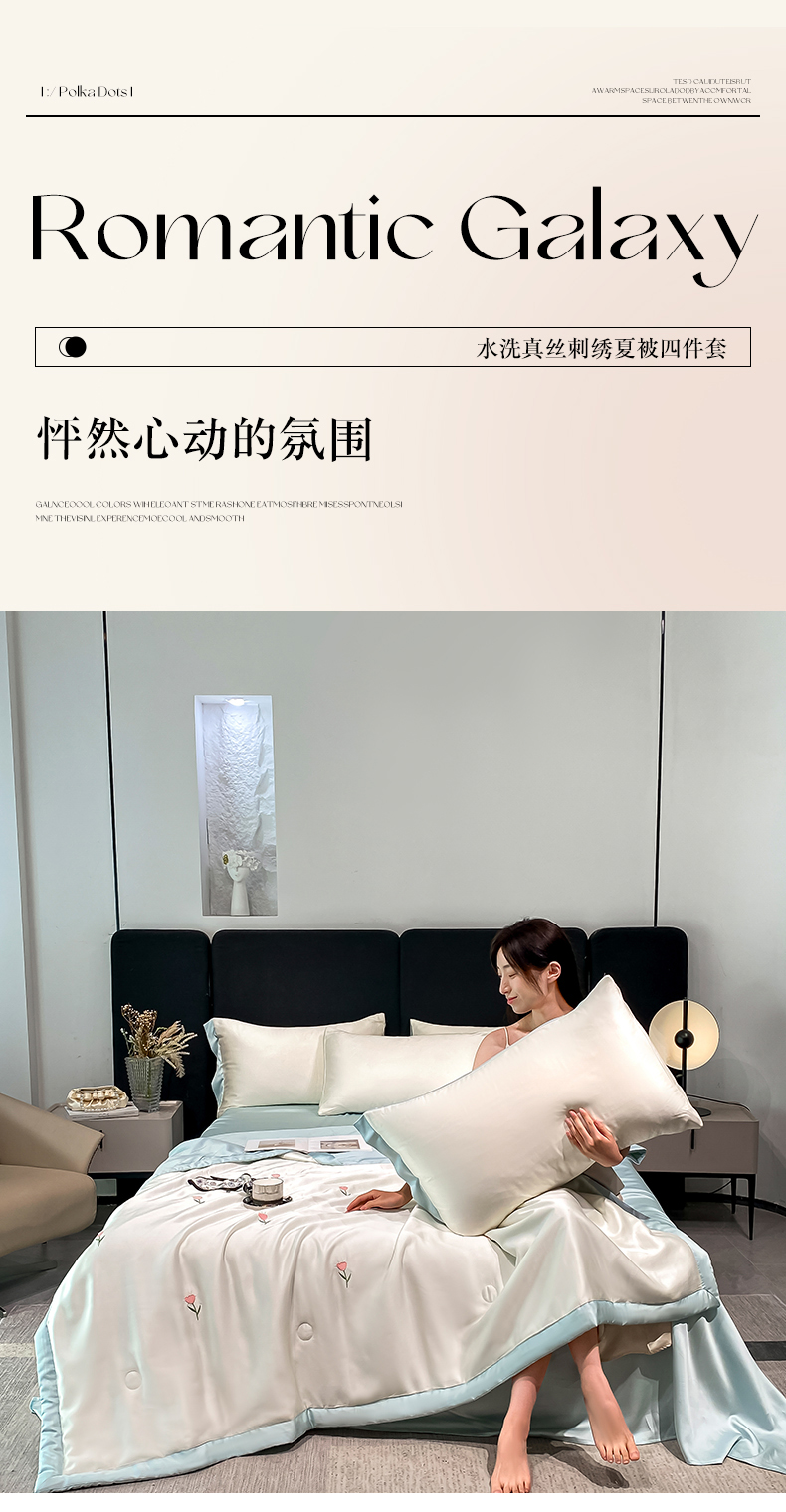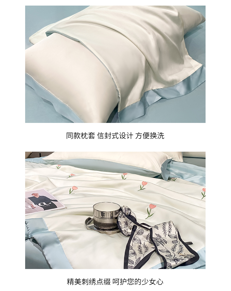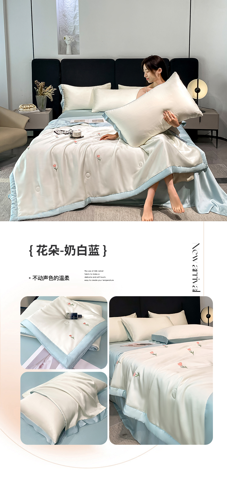 当前位置: 91家纺网 > 商品网购 > 床品套件 > 四件套 > 夏被四件套 > 利欧 2025新款刺绣水洗真丝夏被四件套 花朵-奶白蓝